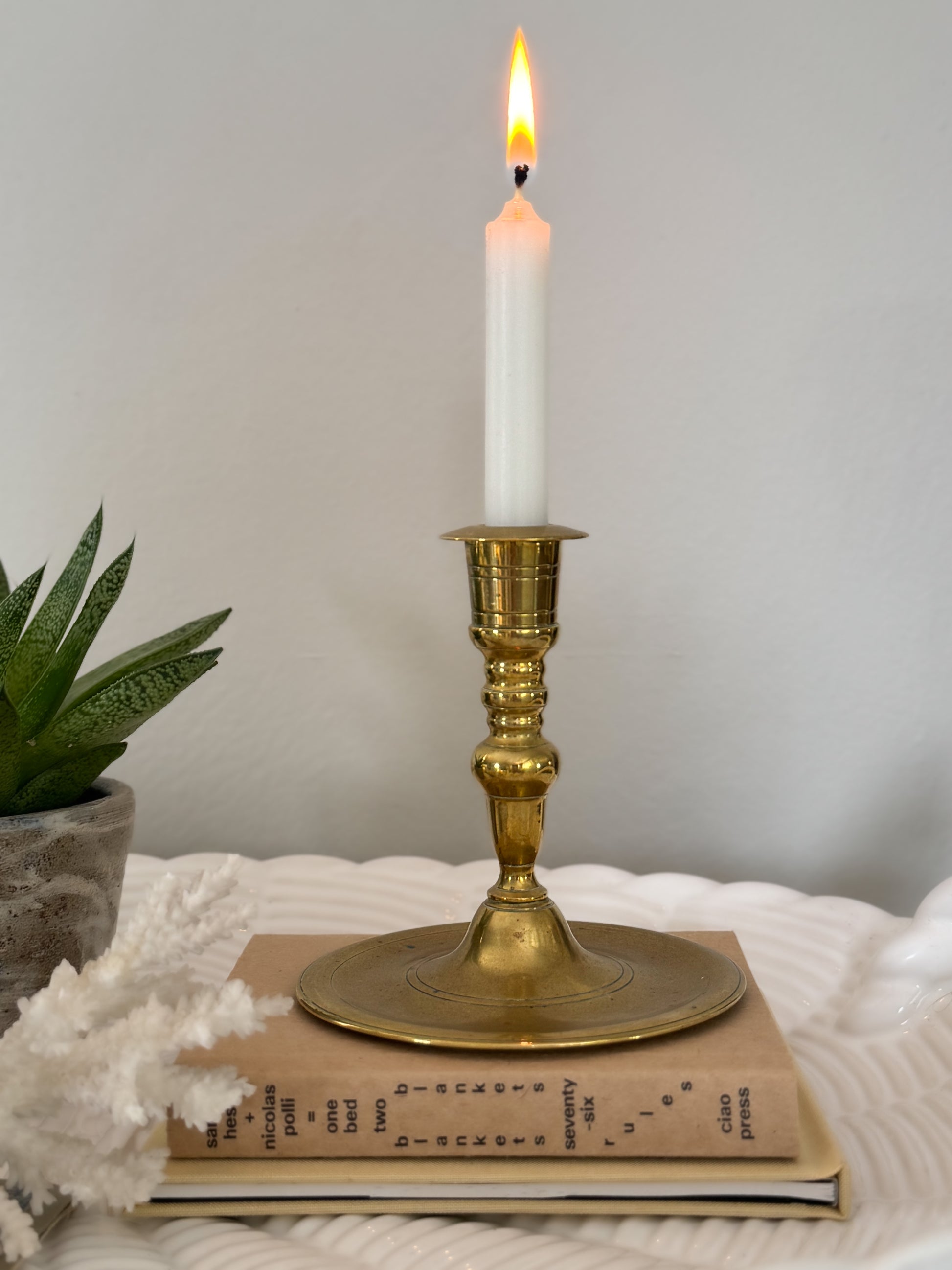 Perfect for slow evenings, candlelit suppers, this heirloom-worthy candlestick pairs beautifully with other antique brass or mixed vintage finds.