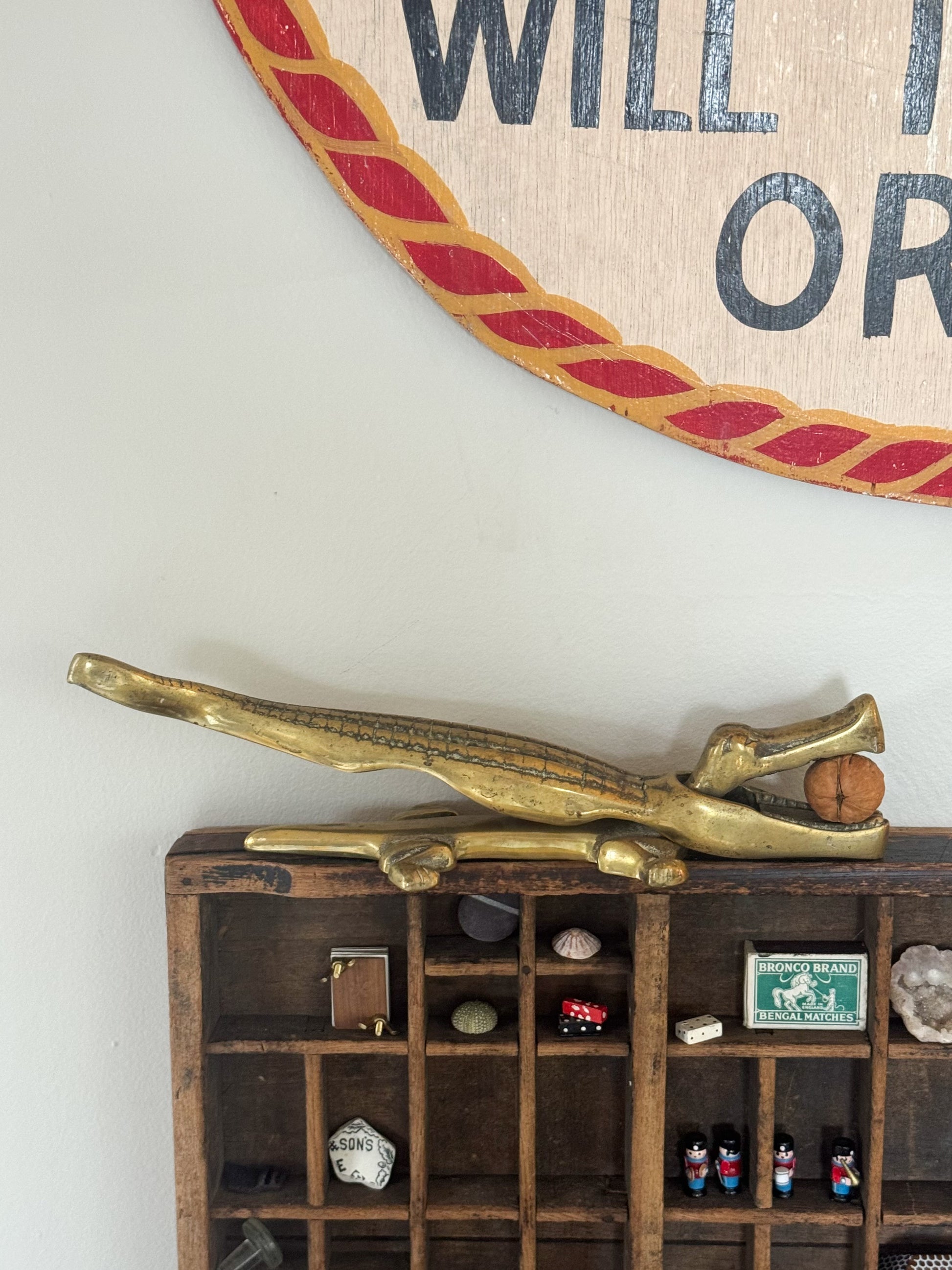 A striking 1920s–1930s solid brass nutcracker in the shape of an alligator, bold, tactile, and full of character. Beautifully cast and wonderfully heavy, this piece combines charm and function in equal measure.