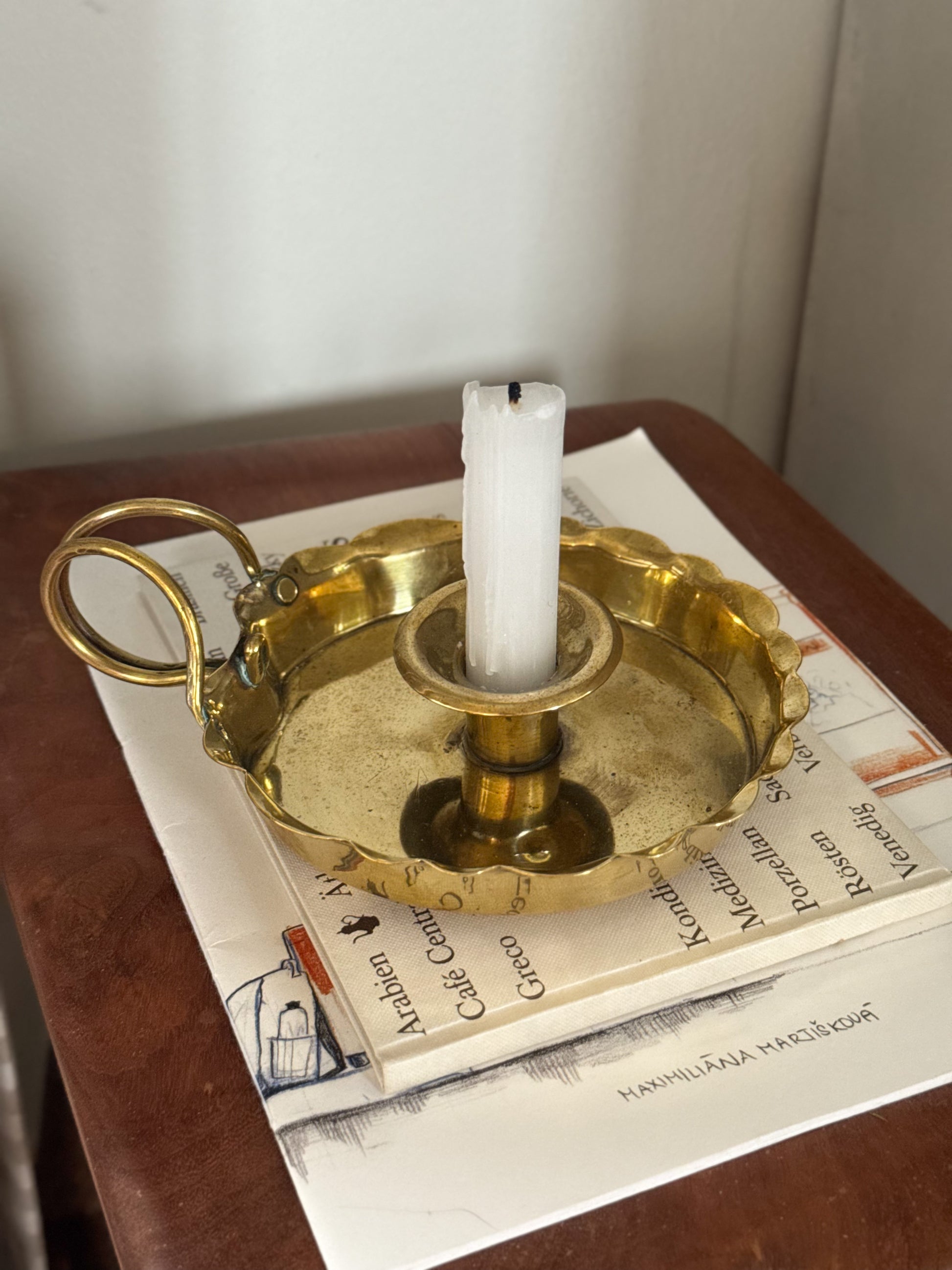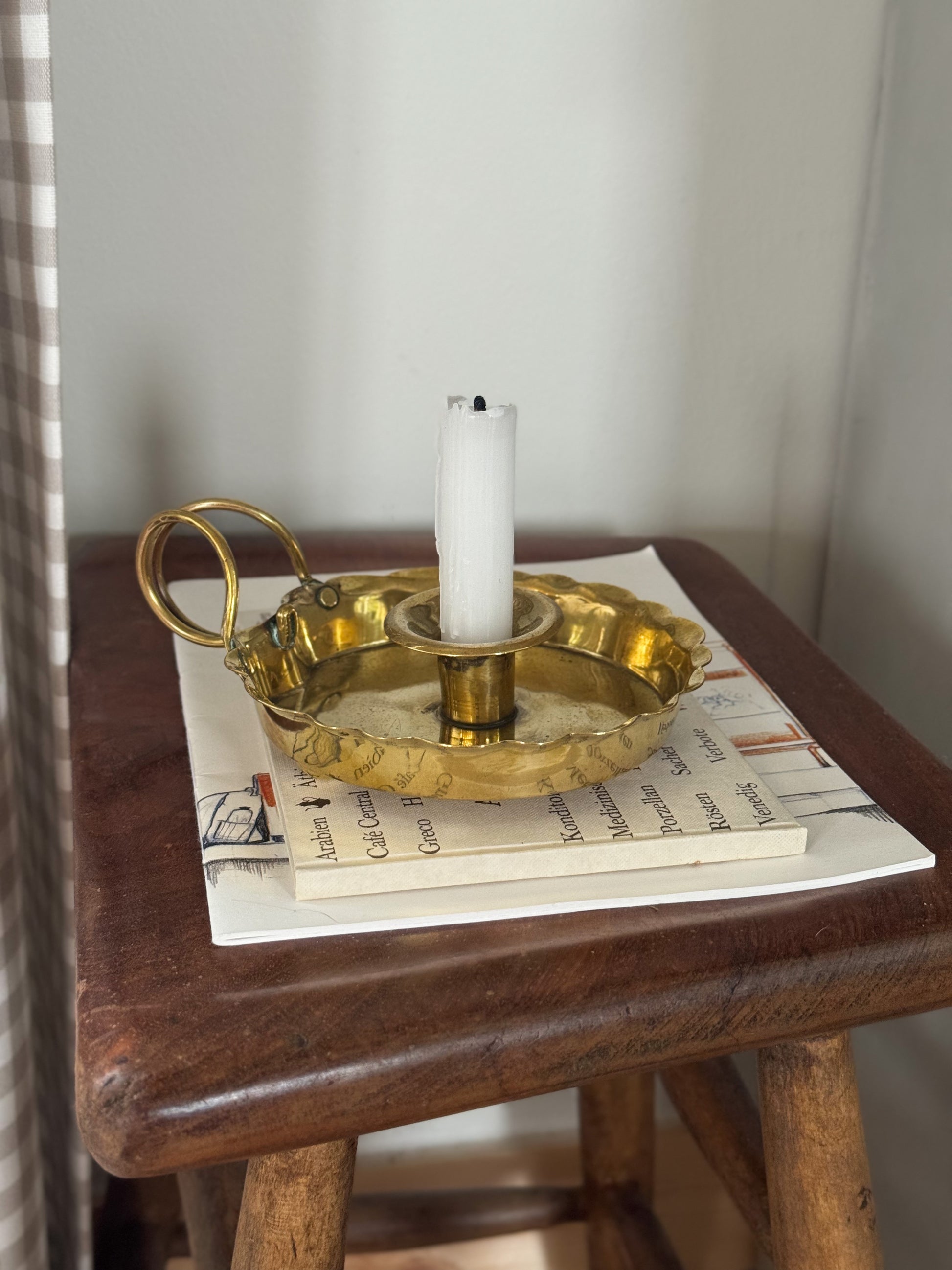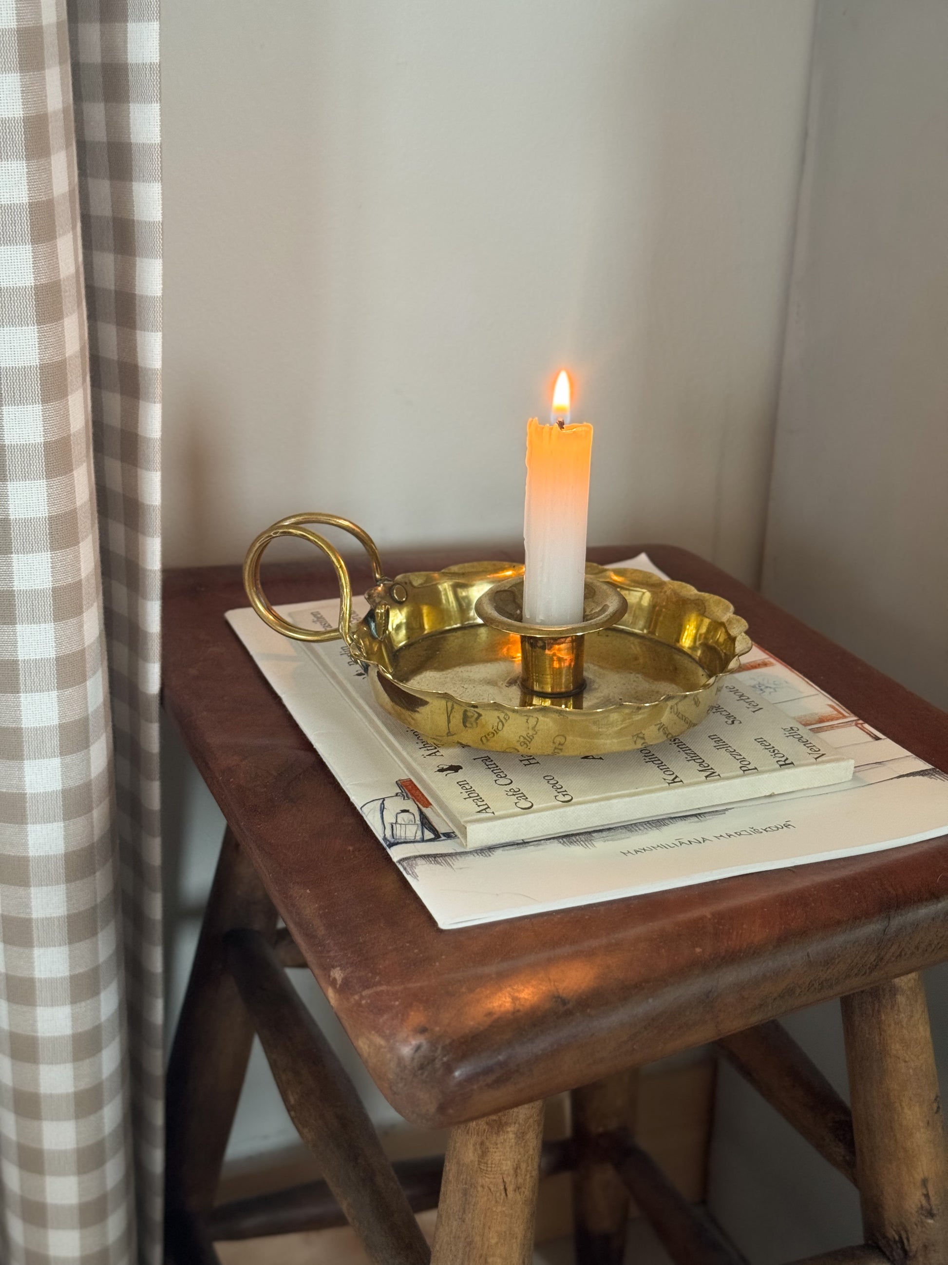 Its golden surface has a gentle, aged patina, with just the right balance of shine and softness. Use it with a short taper candle for a warm, flickering glow, it’s perfect on a bedside stool, bookshelf, or for slow evenings spent reading.