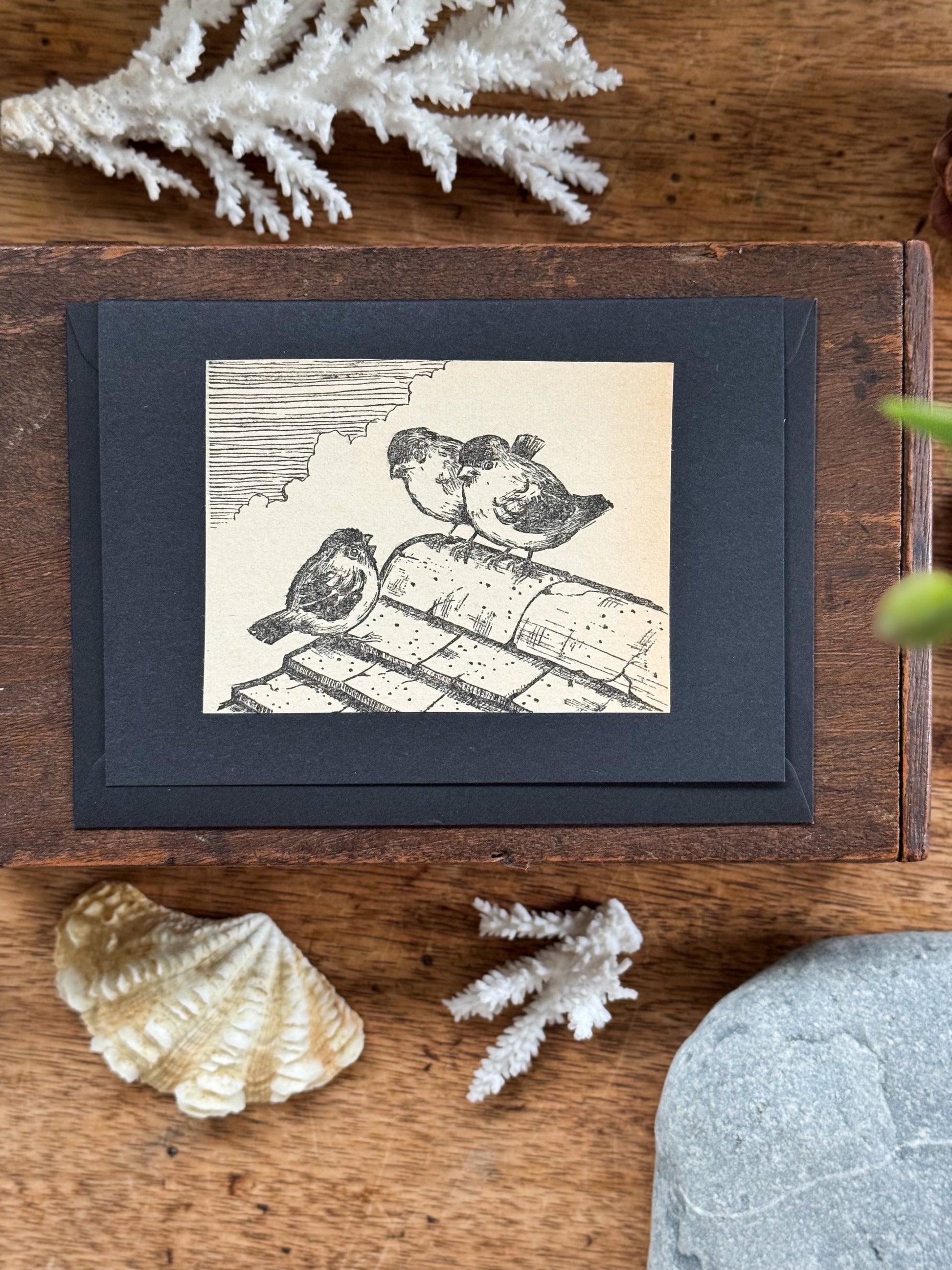 Handmade Hiraeth Vintage Illustration Greeting Card ‘Three Little Birds’ • A6