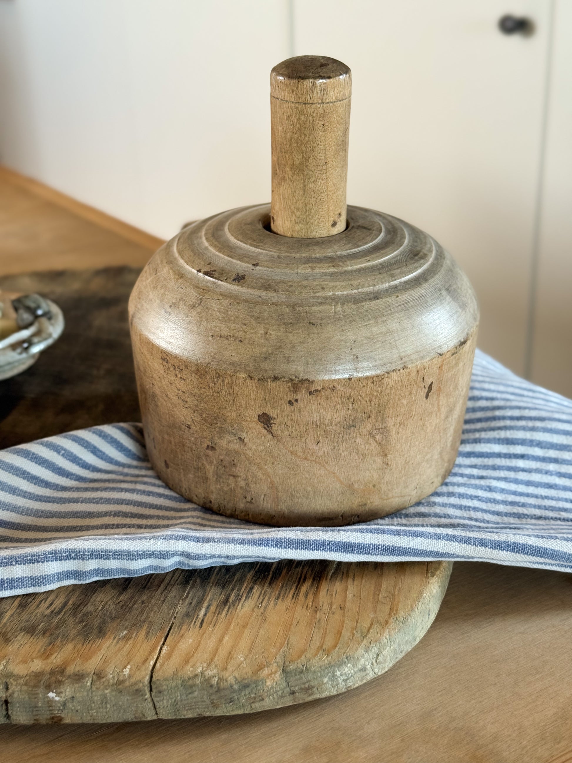 The previous owner shared that it was brought back from America, and its size and form certainly suggest a working life in a dairy or creamery rather than a home kitchen. Today, it stands as a sculptural object in its own right, equally at home displayed on a shelf, leaned against a wall, or styled among ceramics and linens.