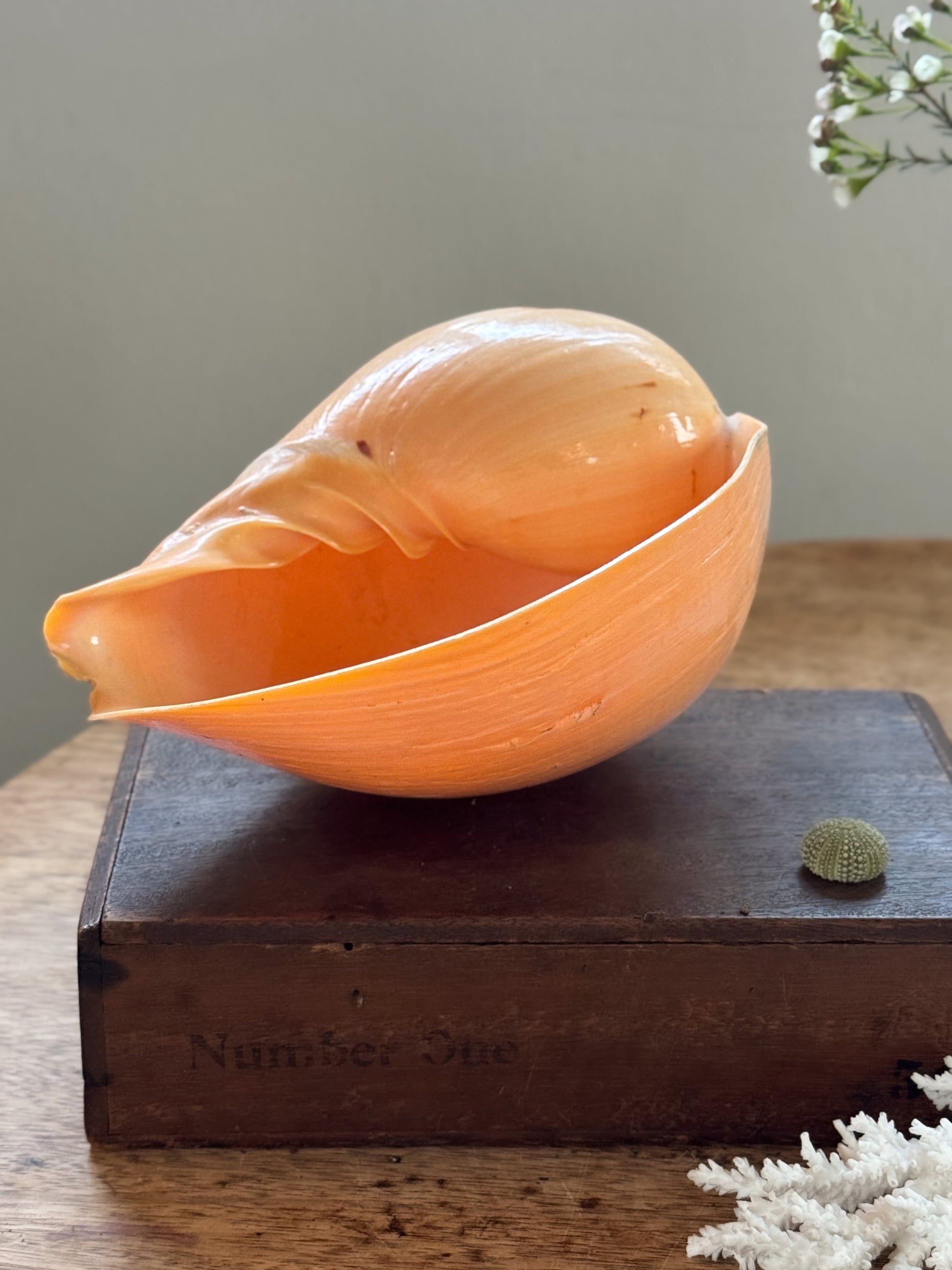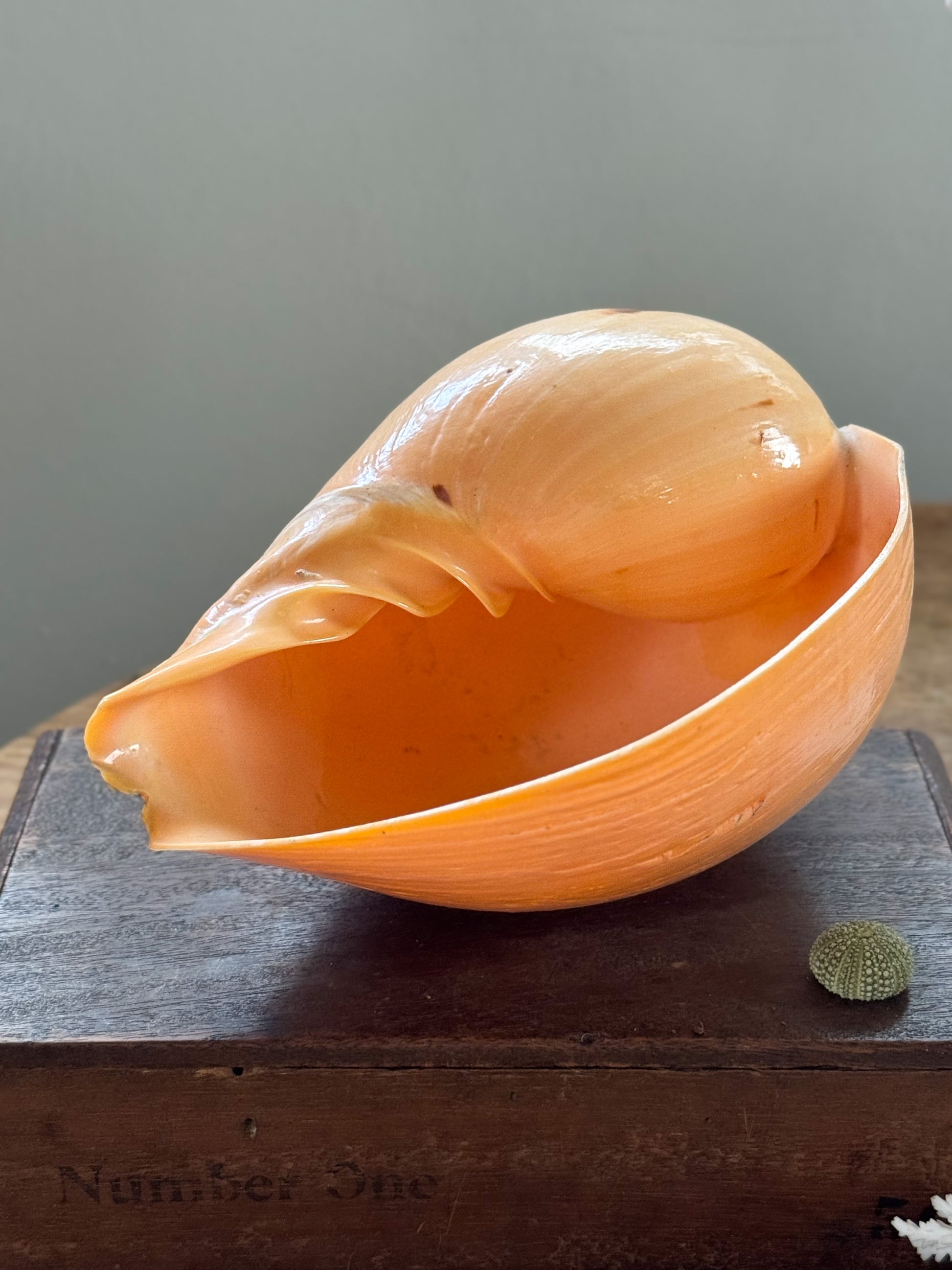 Today, this shell remains a timeless piece of natural history. It can be displayed on a side table or console as a sculptural focal point, or used as a vessel to hold small treasures like sea glass, pinecones, dried flowers, or keepsakes gathered on your travels. It also makes a beautiful base for a moss arrangement, tealights, or a small plant, a gentle way to bring the poetry of the shoreline indoors.