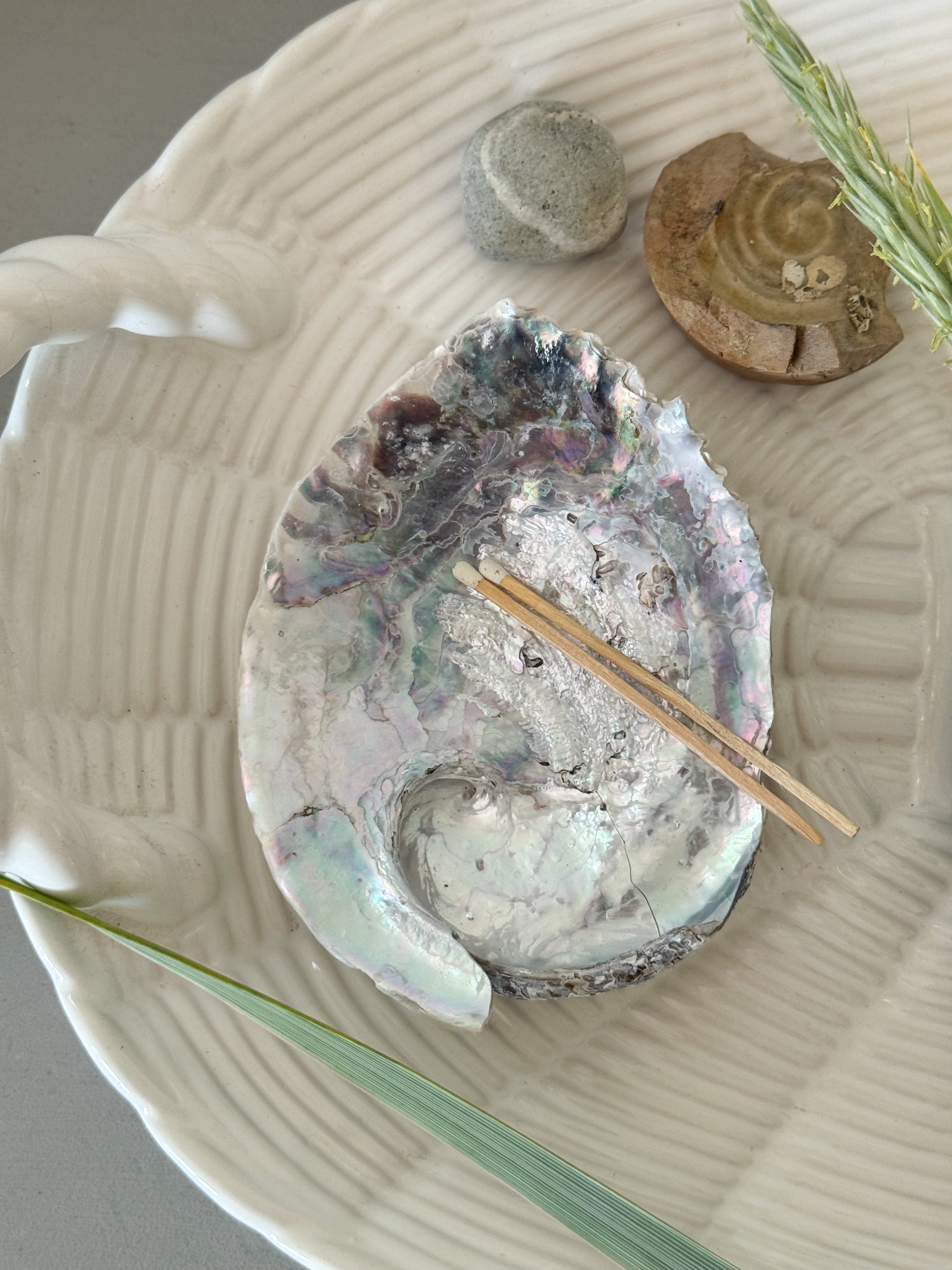 Perfect for holding tealights, incense sticks, Palo Santo, or cherished keepsakes, this shell adds a calming, elemental presence to your home. Style it on a bedside table, coffee table or bathroom shelf as a quiet nod to the sea and slow rituals.