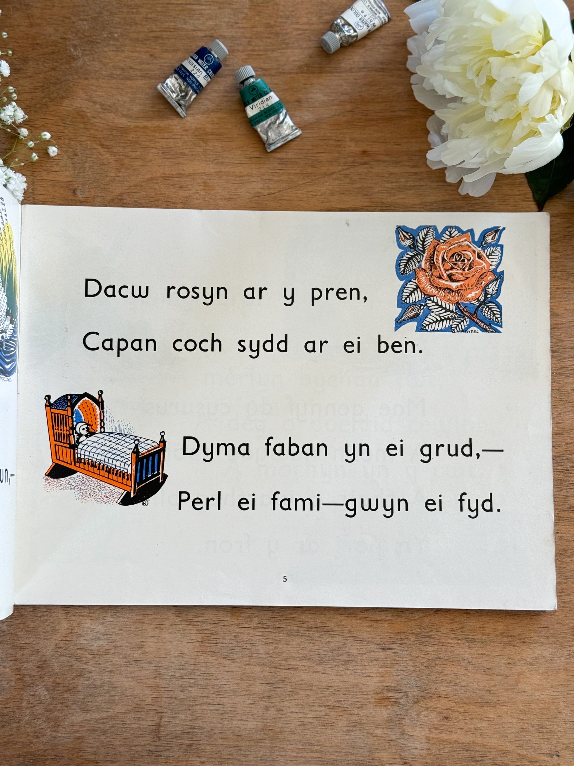 A beautiful Welsh children’s book published circa the 1950s. Inscription in pen on the first page dated 1957. Beautiful illustrations throughout.