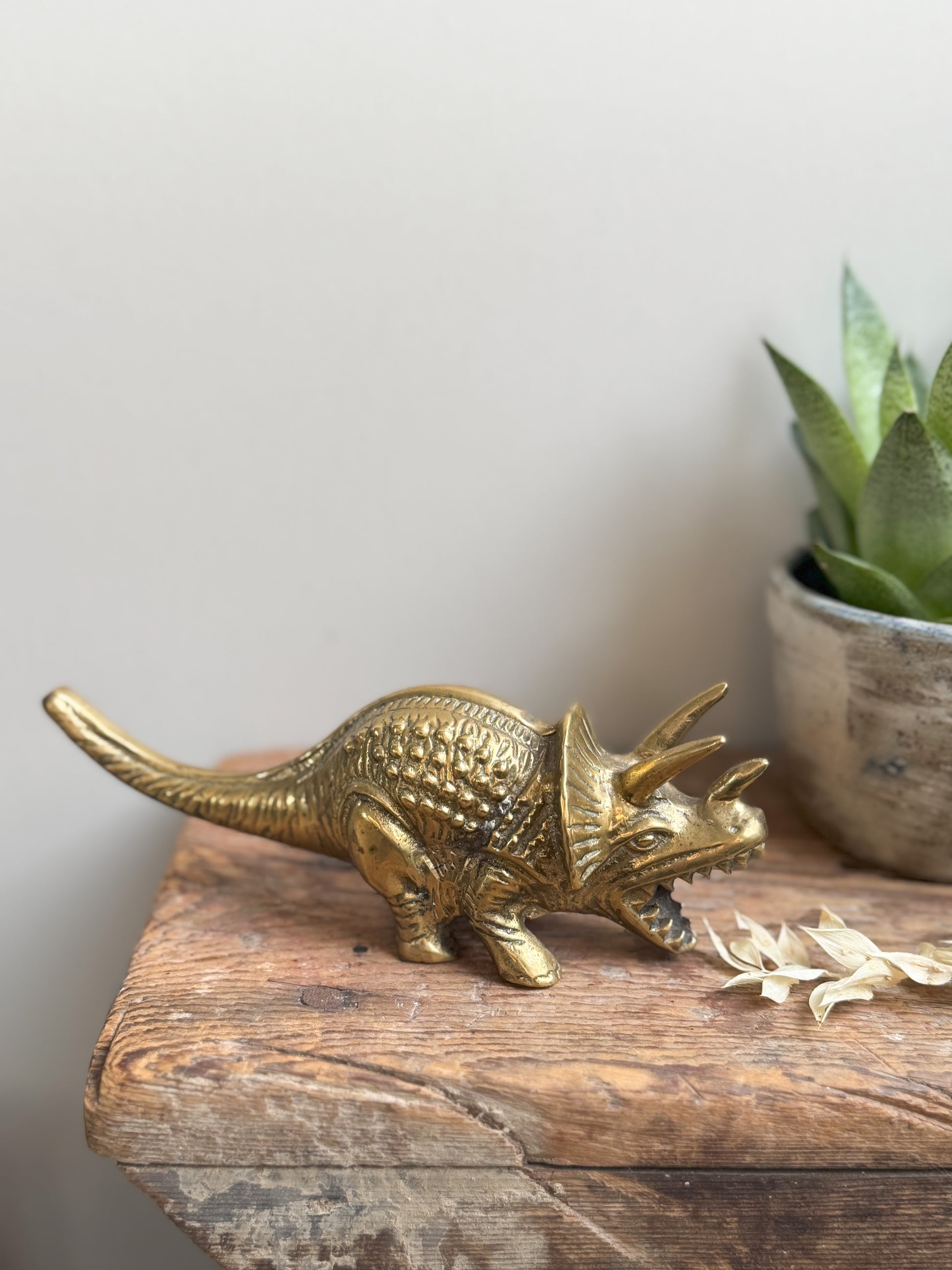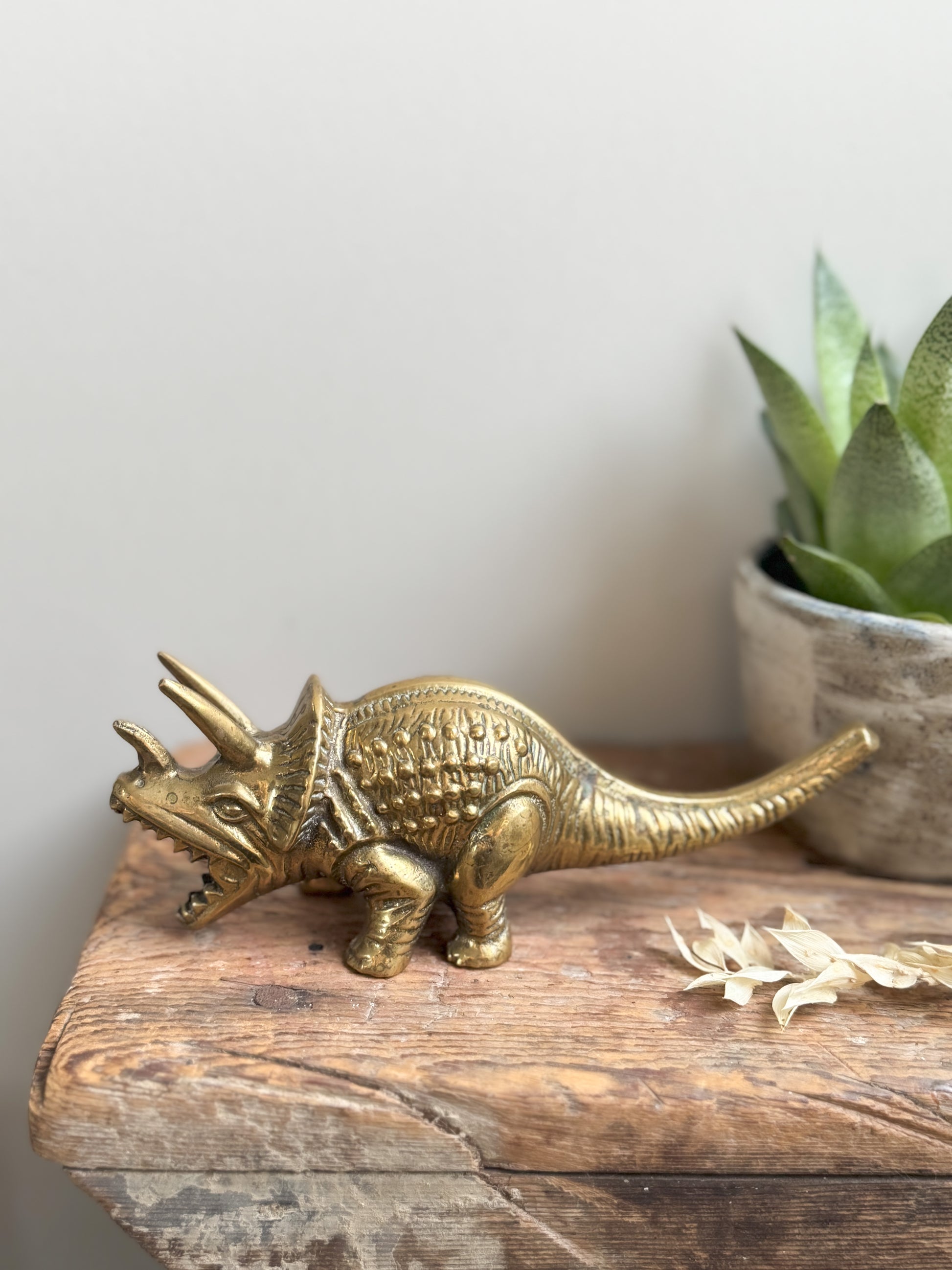 Rare Midcentury Solid Brass Dinosaur | Triceratops