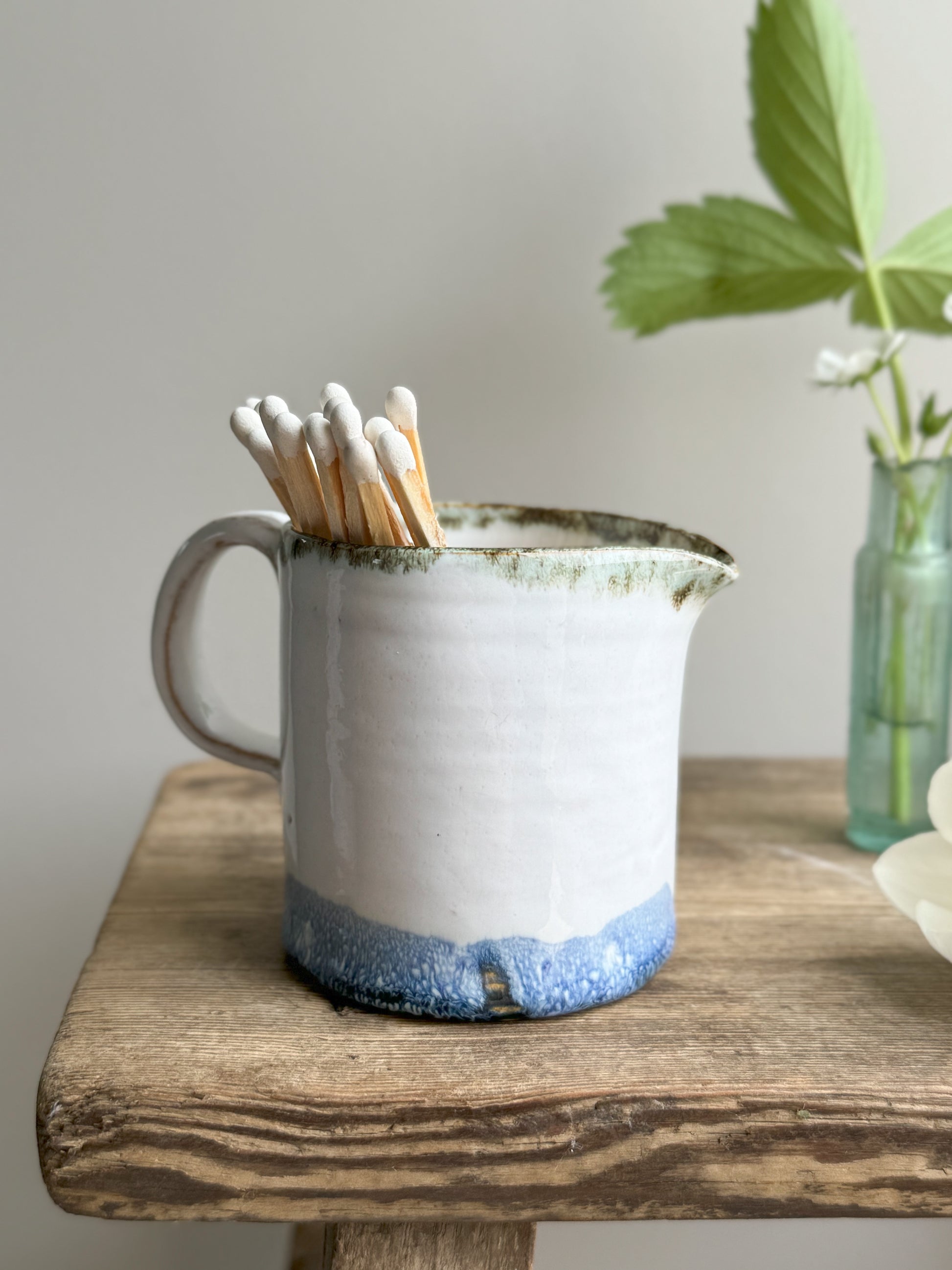 An adorable little drip glaze creamer, decorated with gorgeous hues of green and blue, a must have for any studio pottery lover!