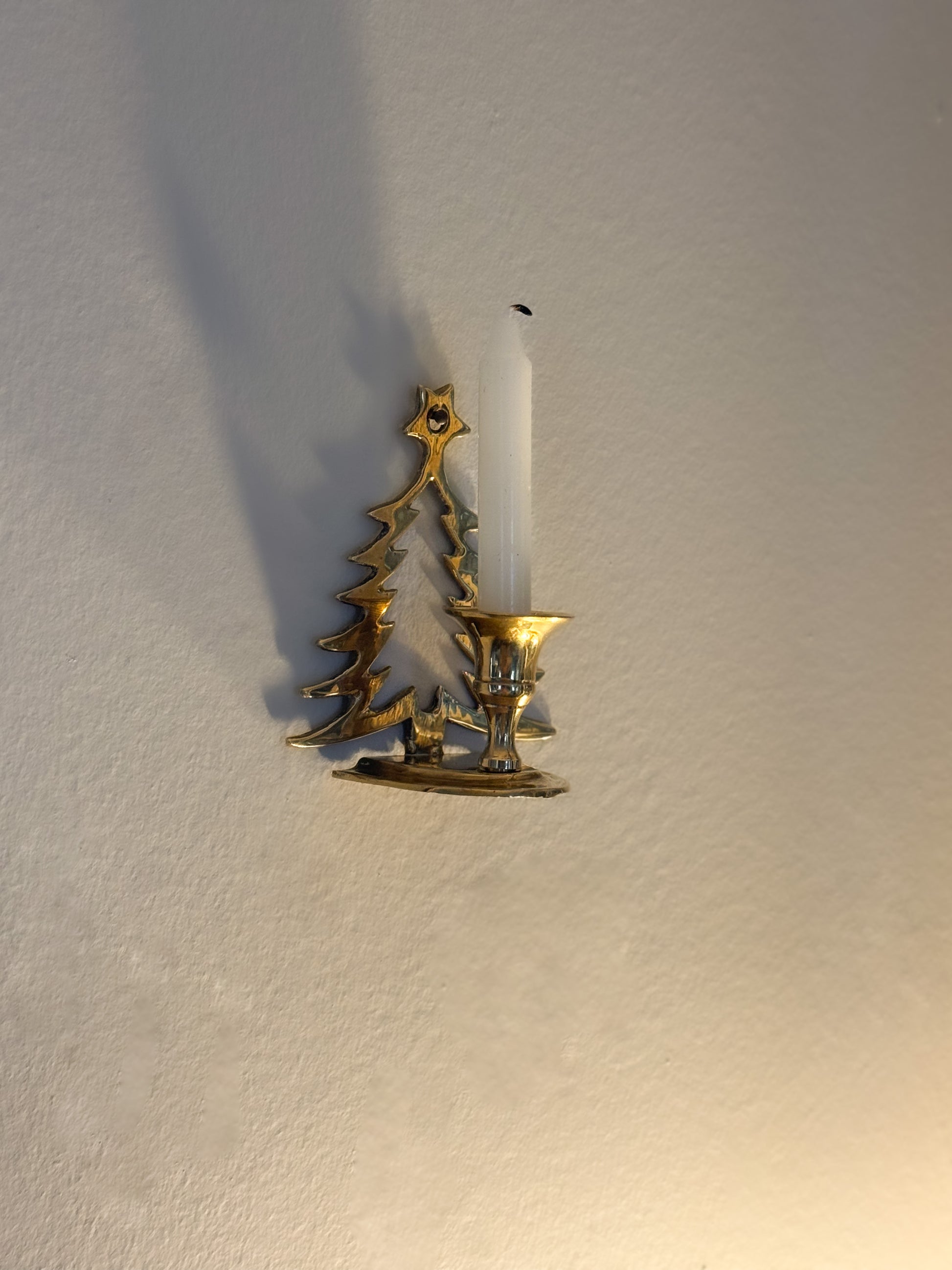 Vintage Solid Brass Christmas Tree Candle Holder (Freestanding or Wall-Mounted)