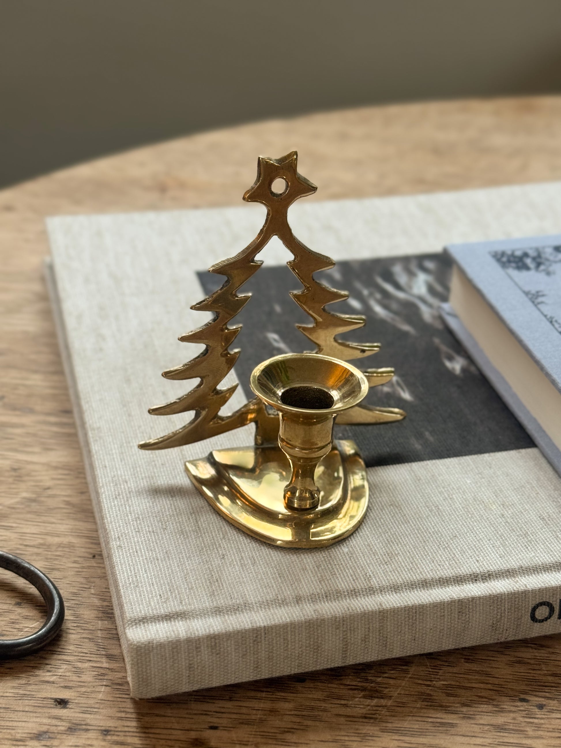 A little piece of festive magic in solid brass, this vintage Christmas tree candle holder brings a warm, nostalgic glow to winter evenings. With its sweet, stylised tree silhouette and tiny star at the top, it feels like something you might have found in a wooden cabin at Christmastime, soft candlelight flickering against the walls while everything outside is quiet and frost-tipped.
