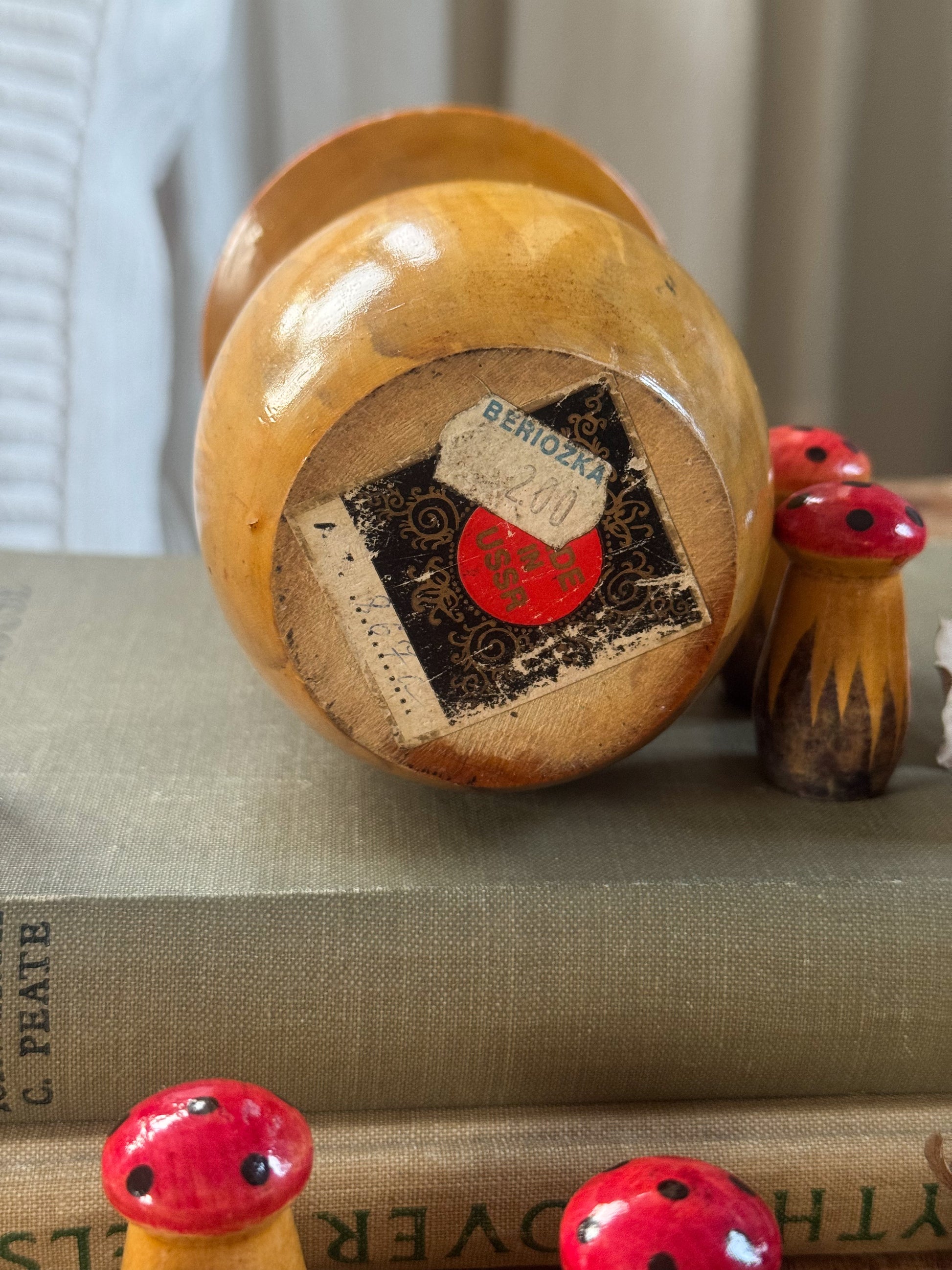 Very Rare Vintage Midcentury Russian Nesting Mushroom Set (Wooden Matryoshka Toadstools)