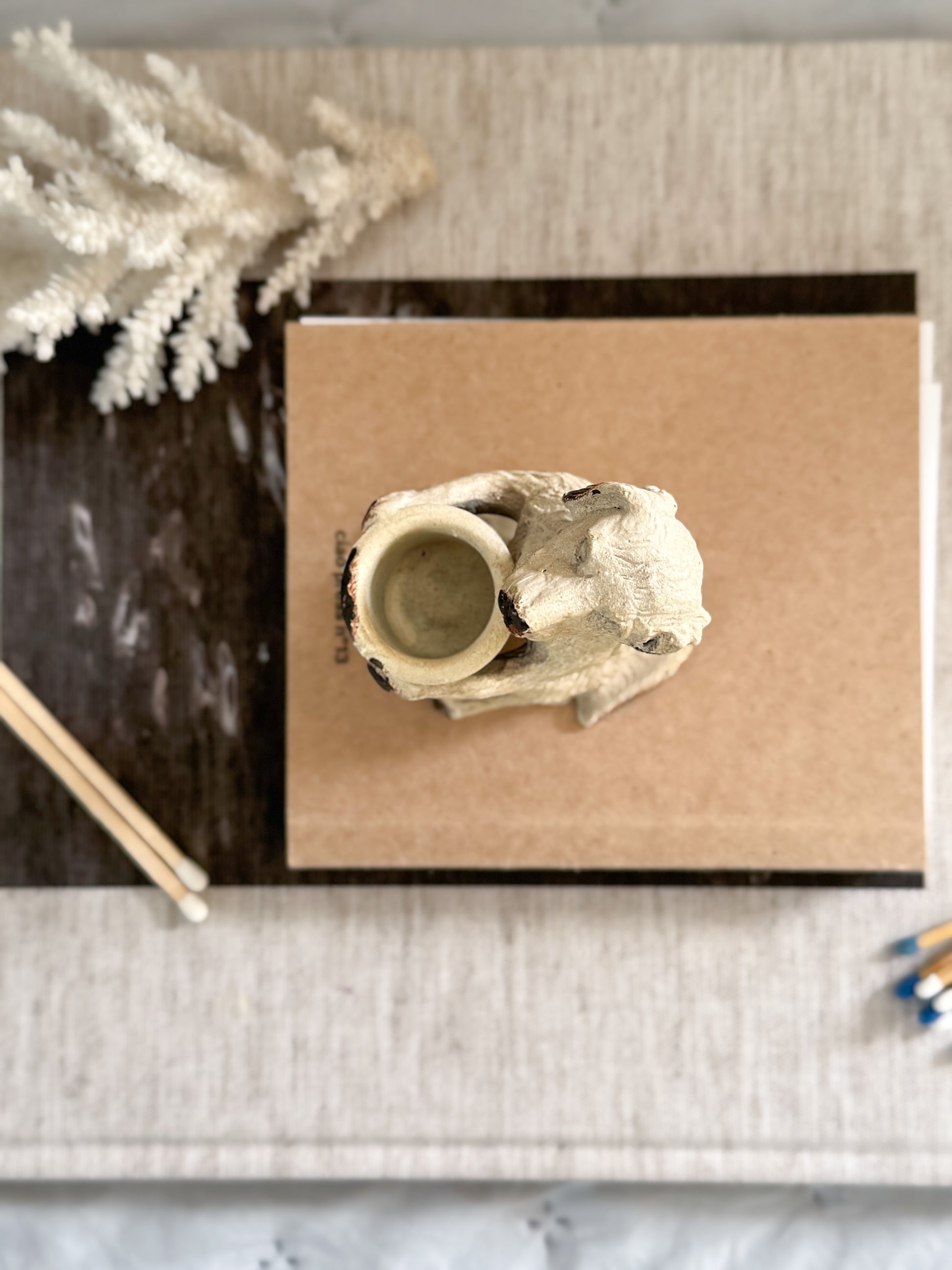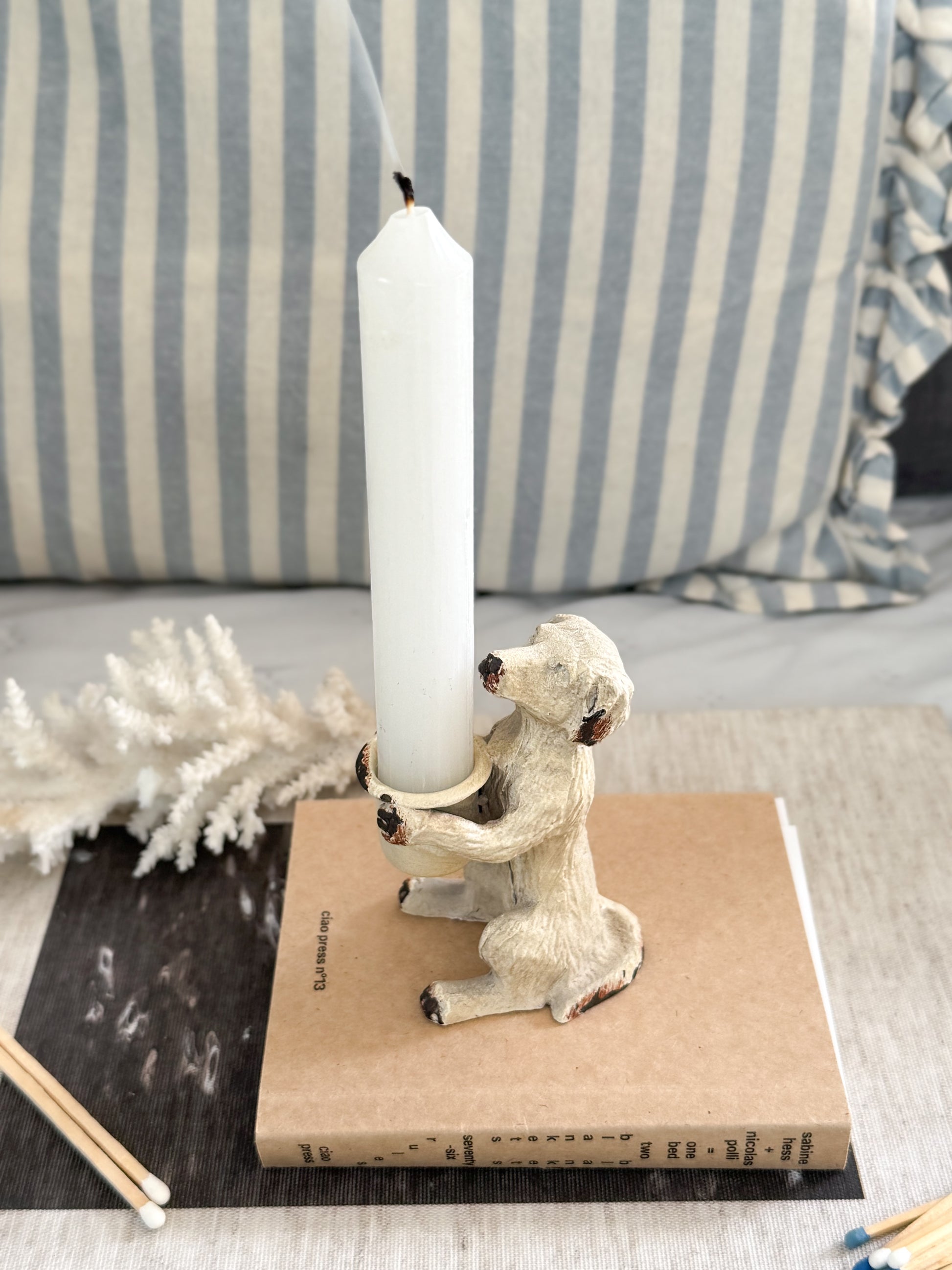 A beautifully handmade and one-of-a-kind little treasure with so much character, this hand-painted cast iron dog holds a small cup that works perfectly as either a candlestick or a match holder. I love pieces like this, that feel both playful and practical.