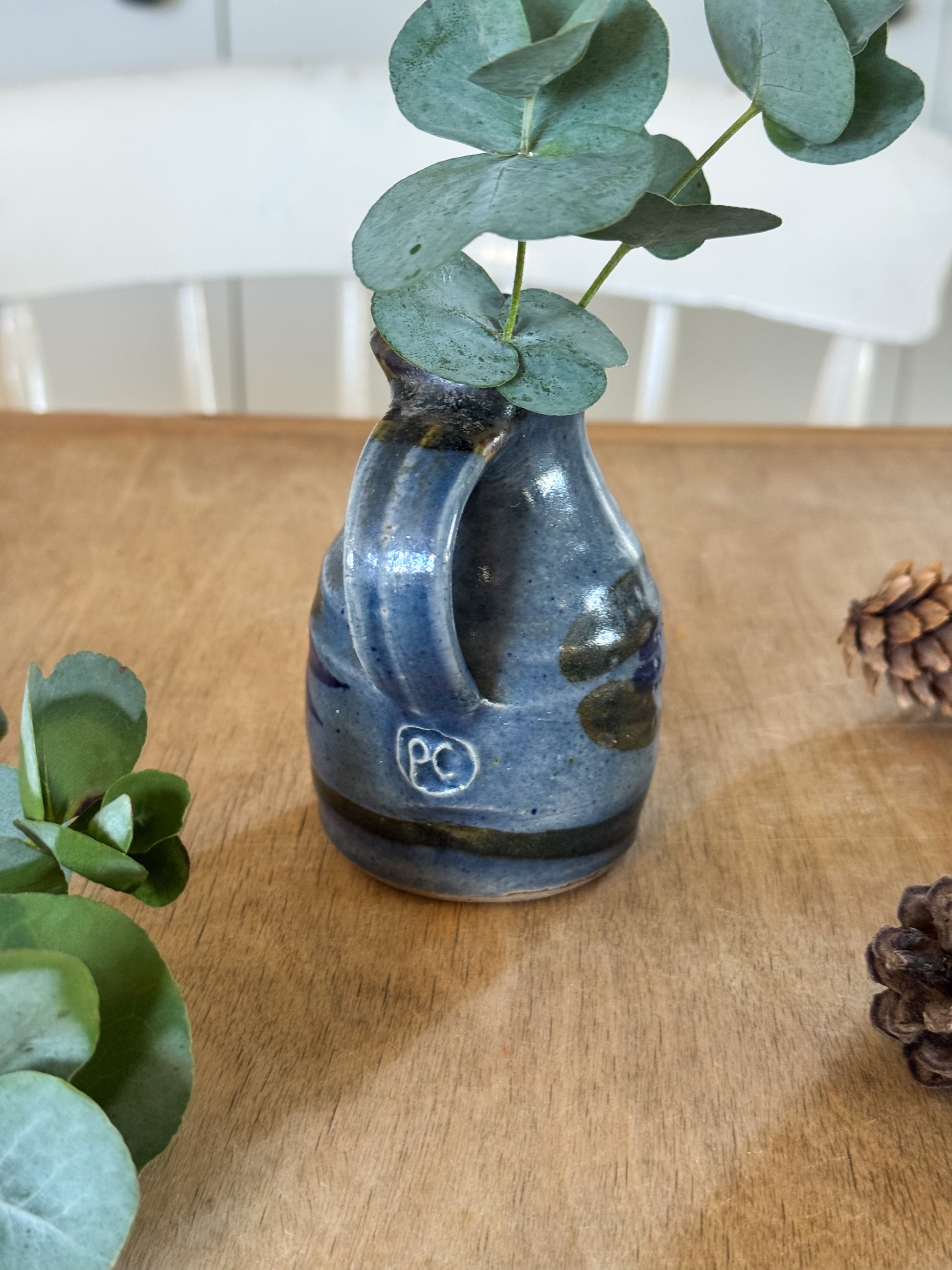 Vintage Blue Studio Pottery Vinegar Jug - Signed “PC”