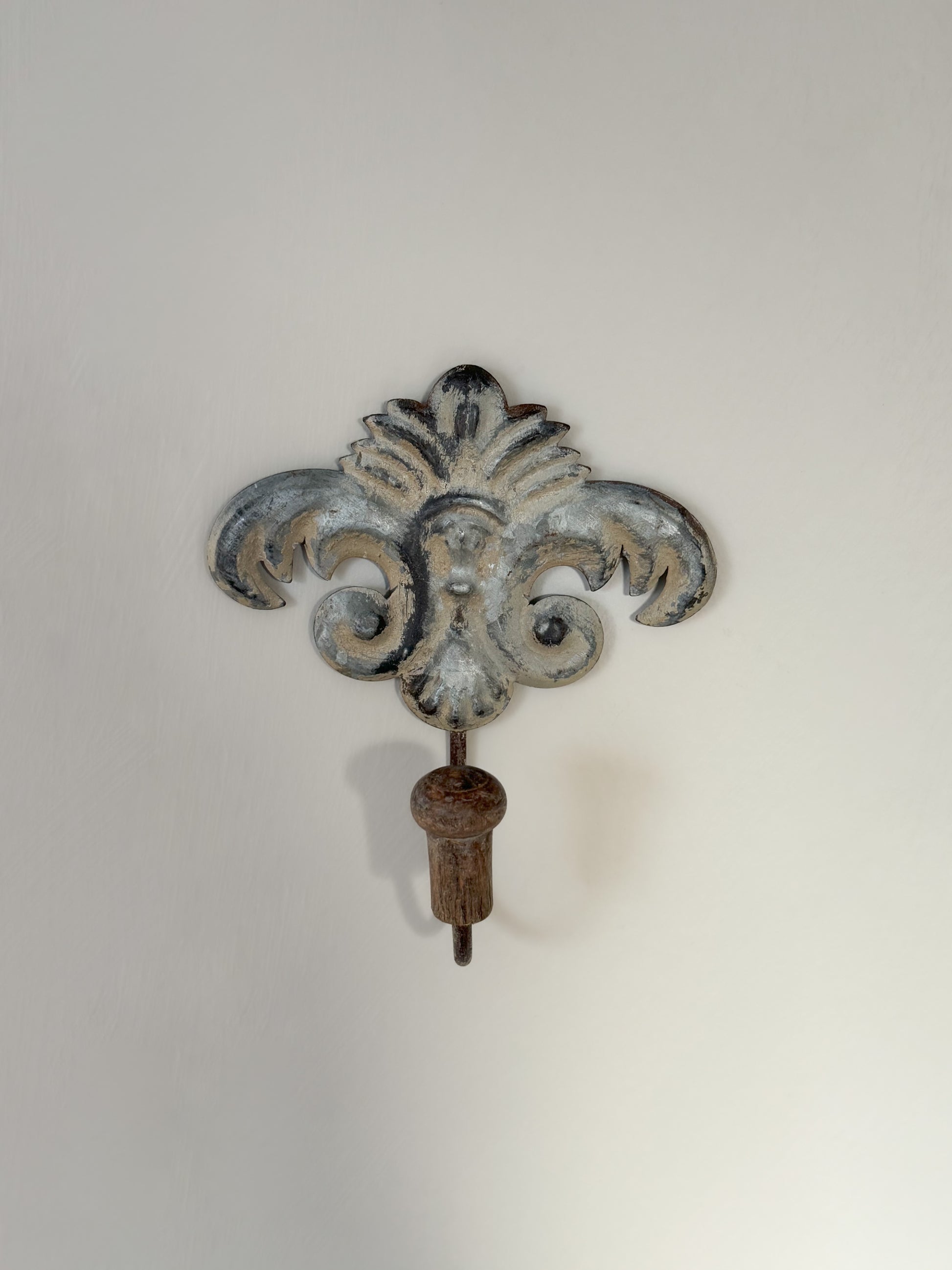 Vintage French fleur-de-lis Tin Coat Hook Pair