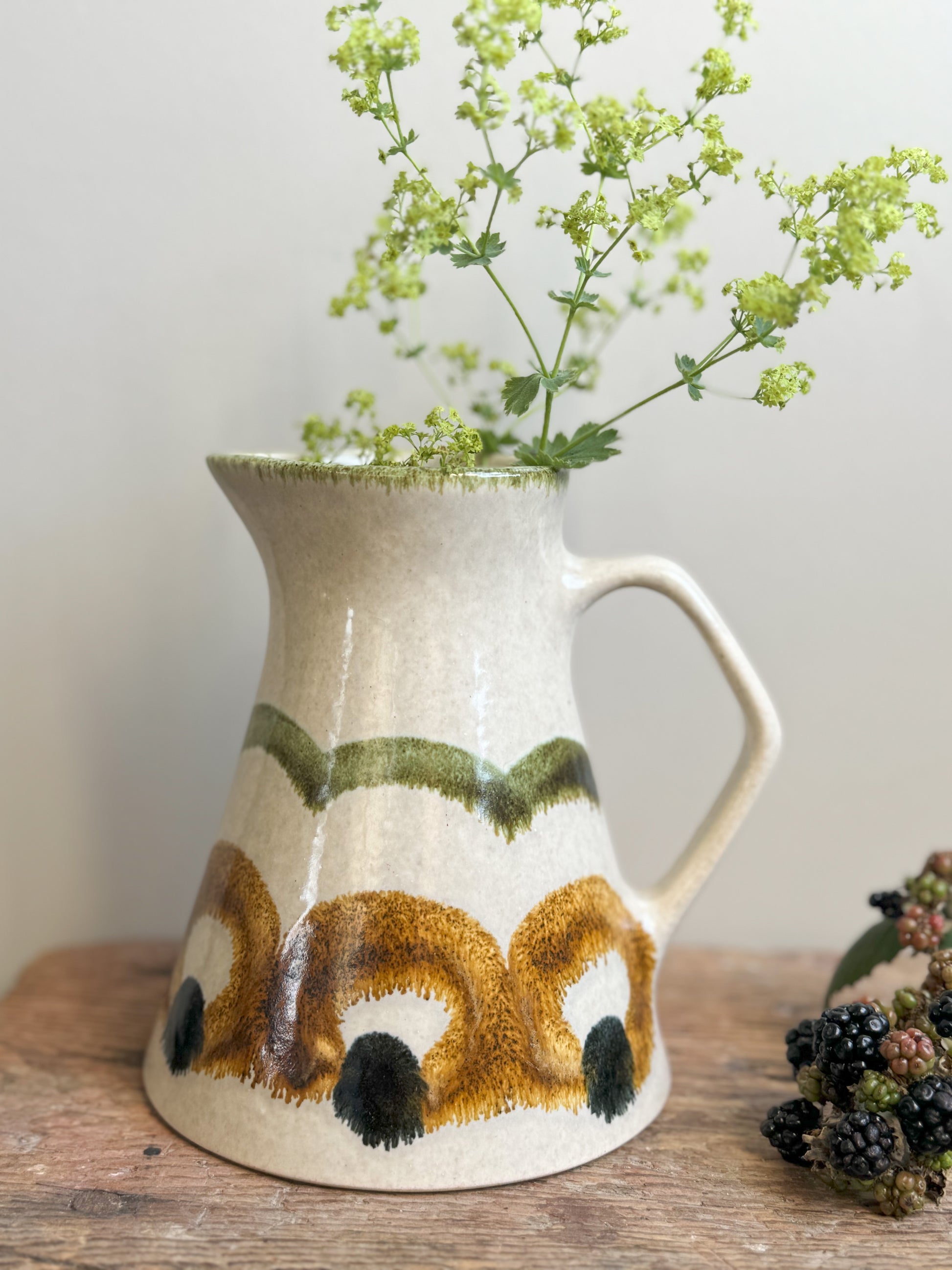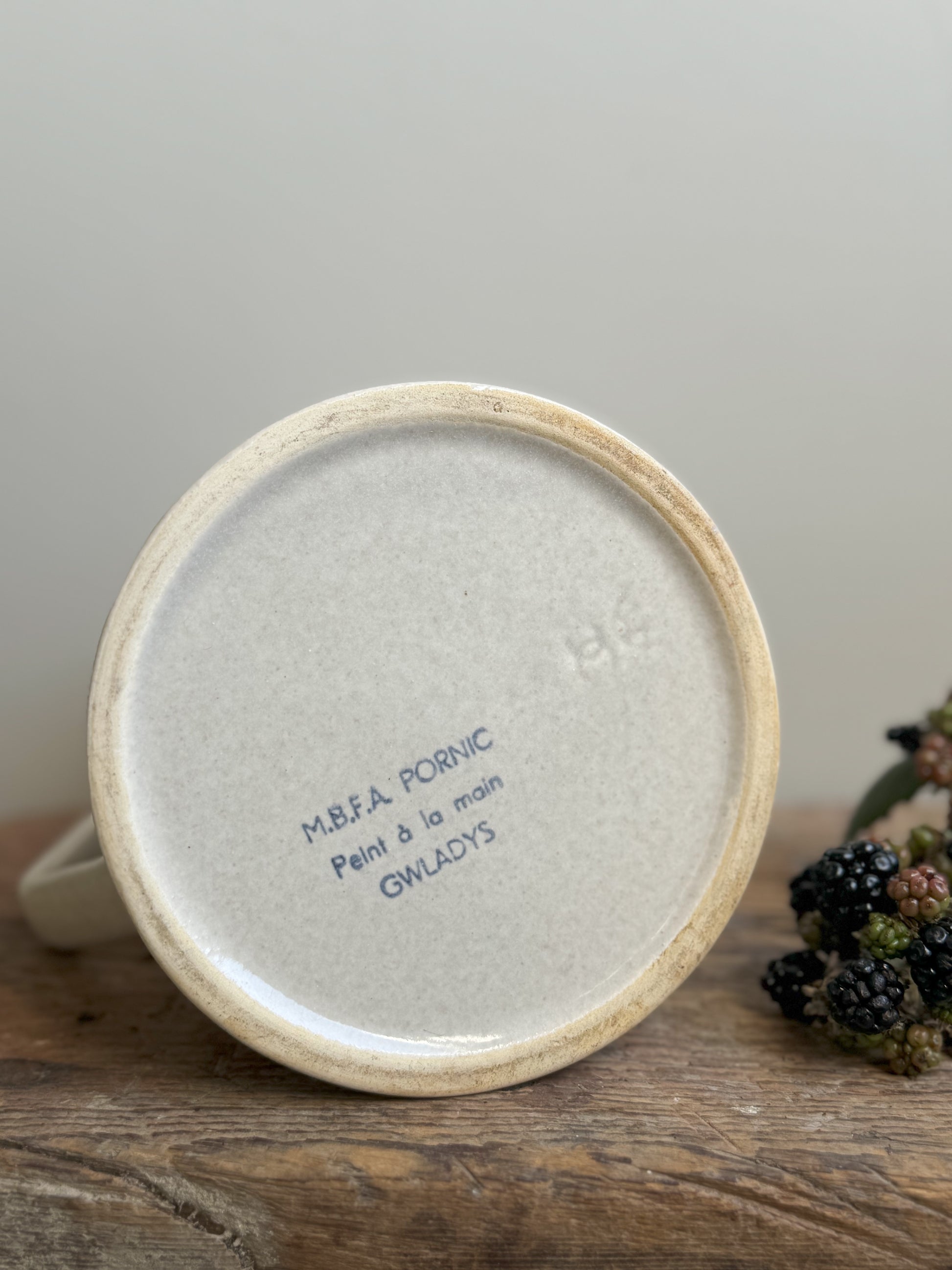 A beautiful French pottery jug by Pornic, decorated with a fantastic abstract pattern. Perfect for a little bud vase.