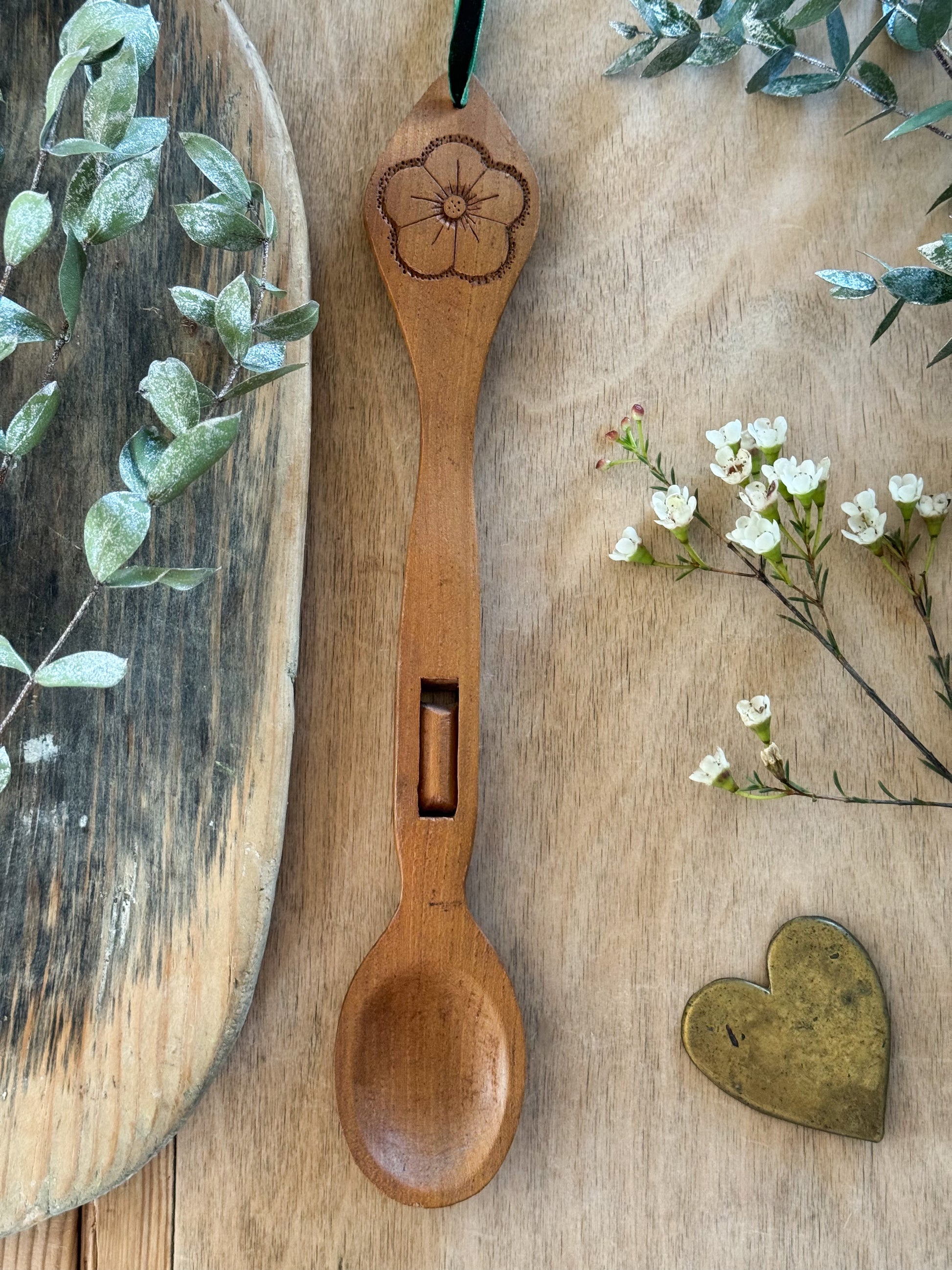 Vintage Hand-Carved Welsh Love Spoon - The Wild Flower • Y Blodyn Gwyllt