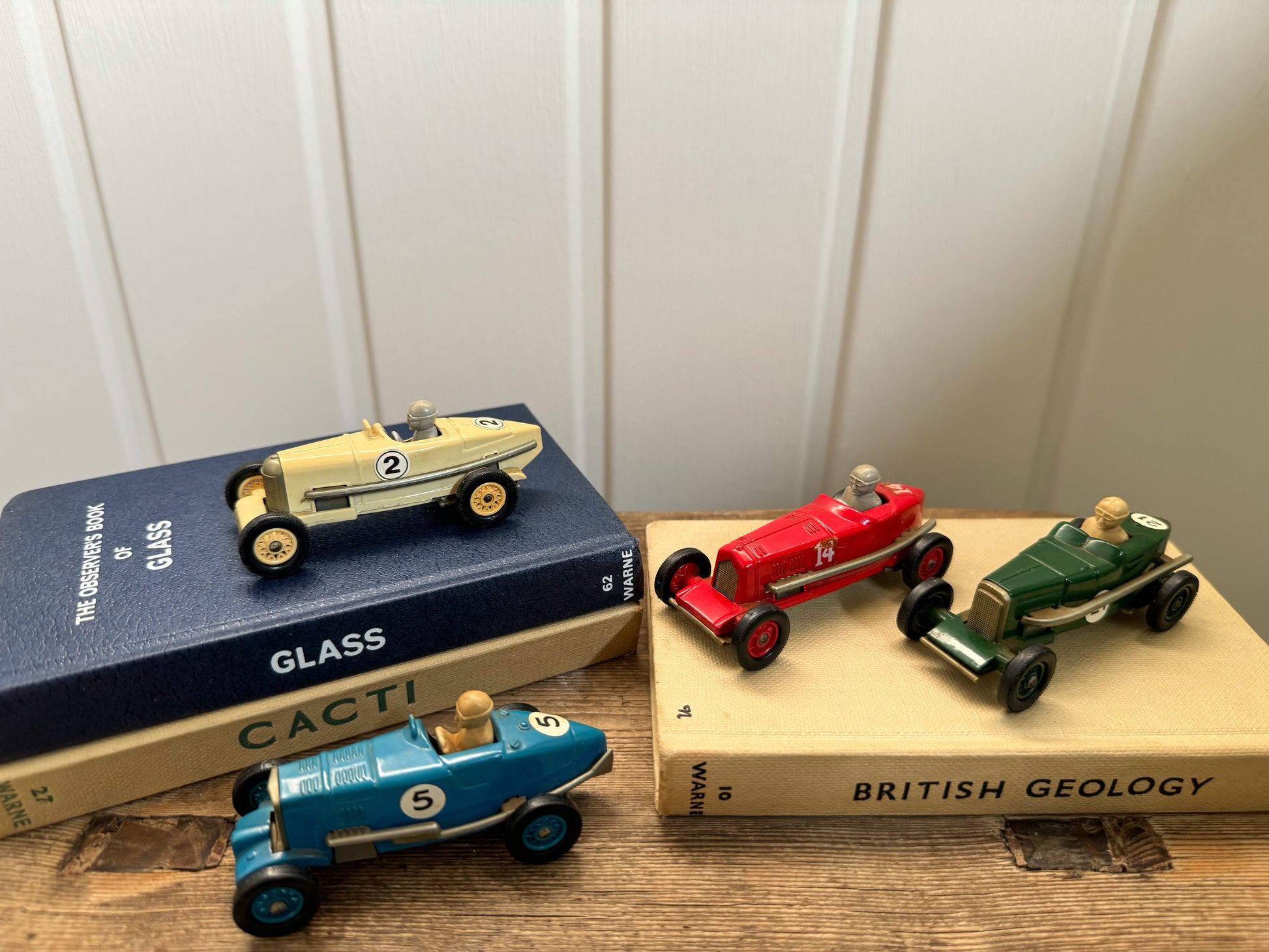 A beautiful set of 4 toy racing cars, made in England by Lledo PLC circa the 1960s.