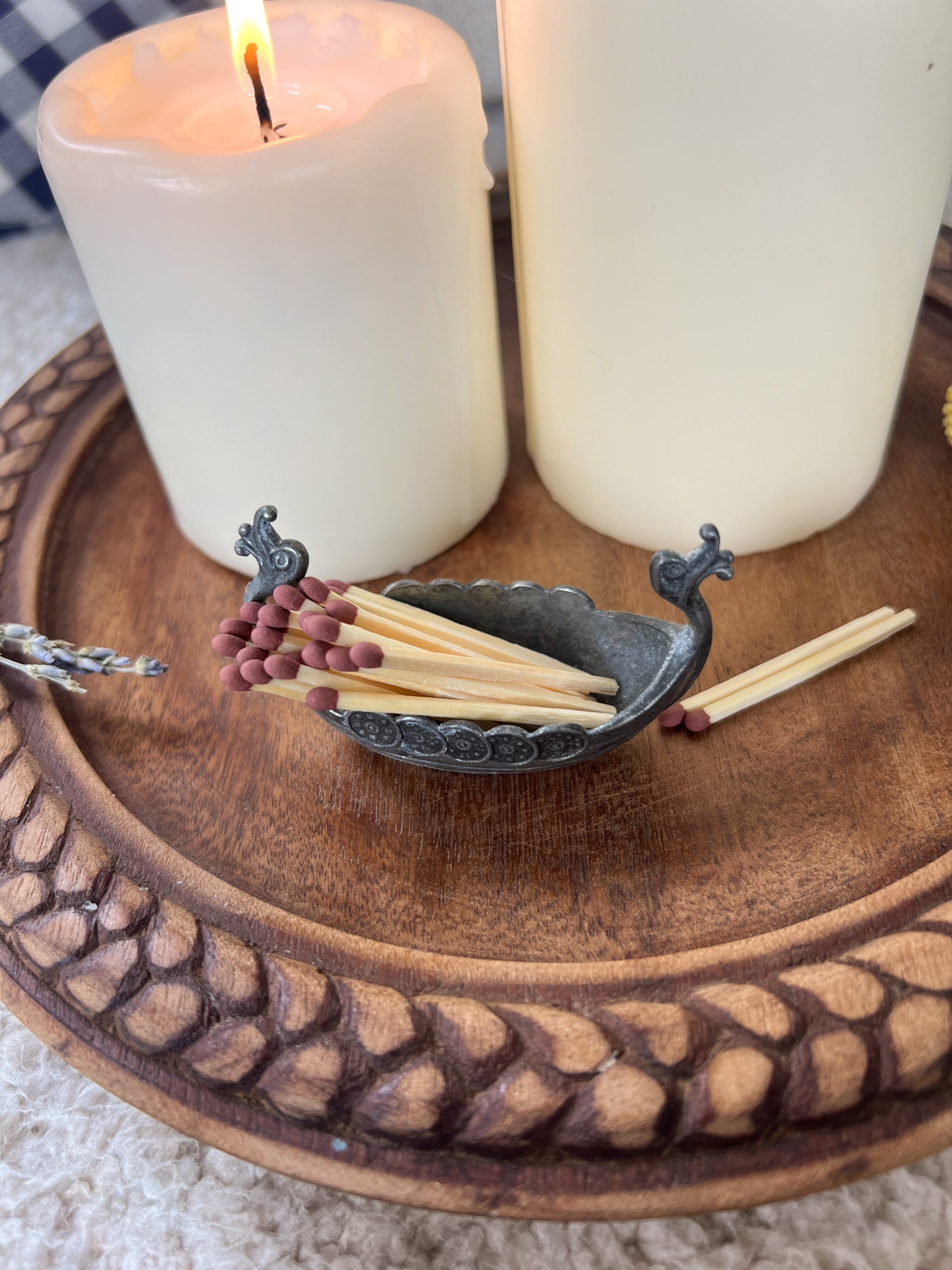 A beautiful miniature pewter Viking ship, perfect as a little match pot.