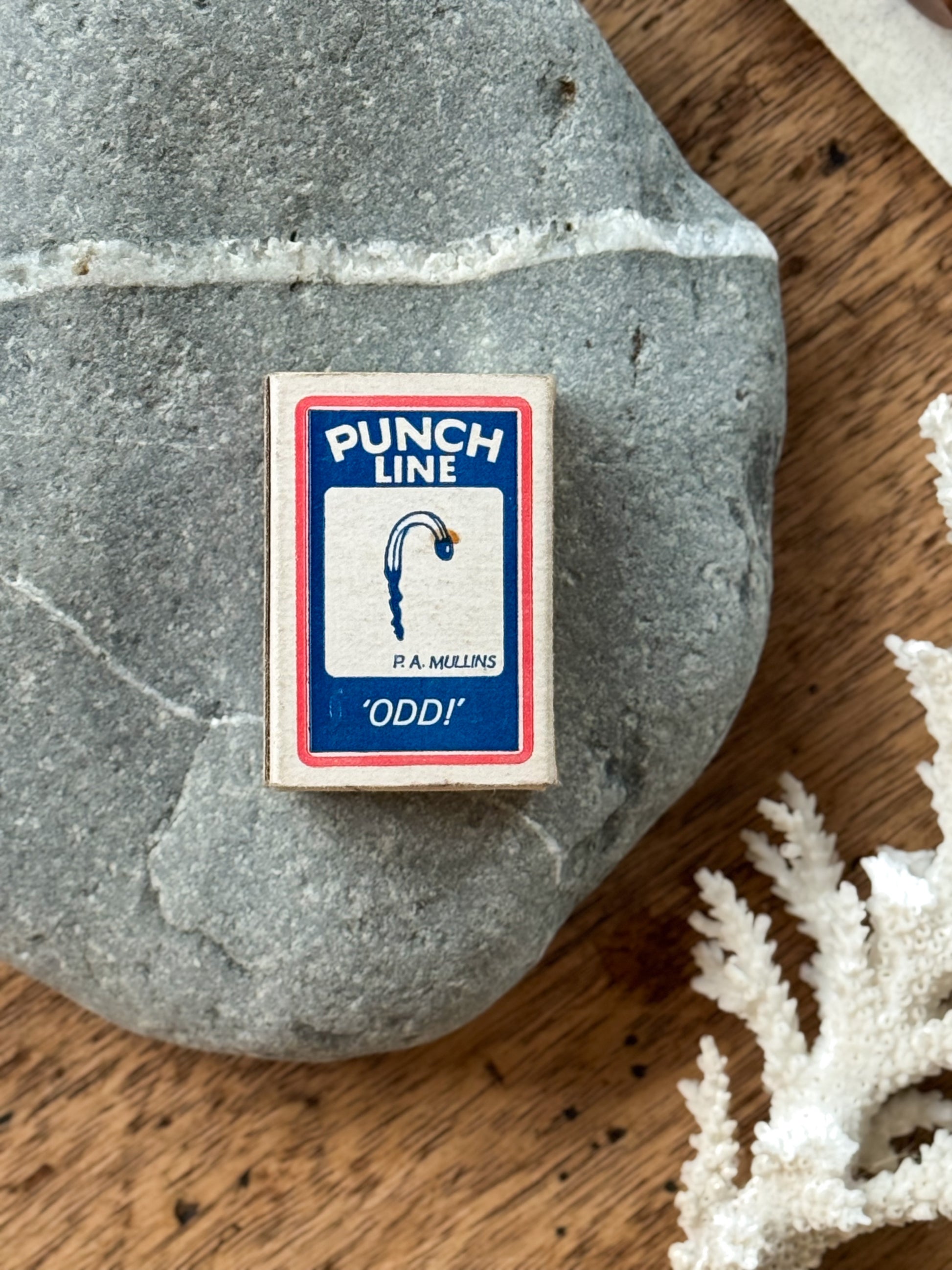 A wonderfully graphic vintage Punch Matches box, made by J. John Masters & Co. Ltd., London. Featuring the bold red and blue “Punch” design on one side, and a witty Punch Line illustration on the reverse, a playful nod to the famous British magazine and its sharp humour.