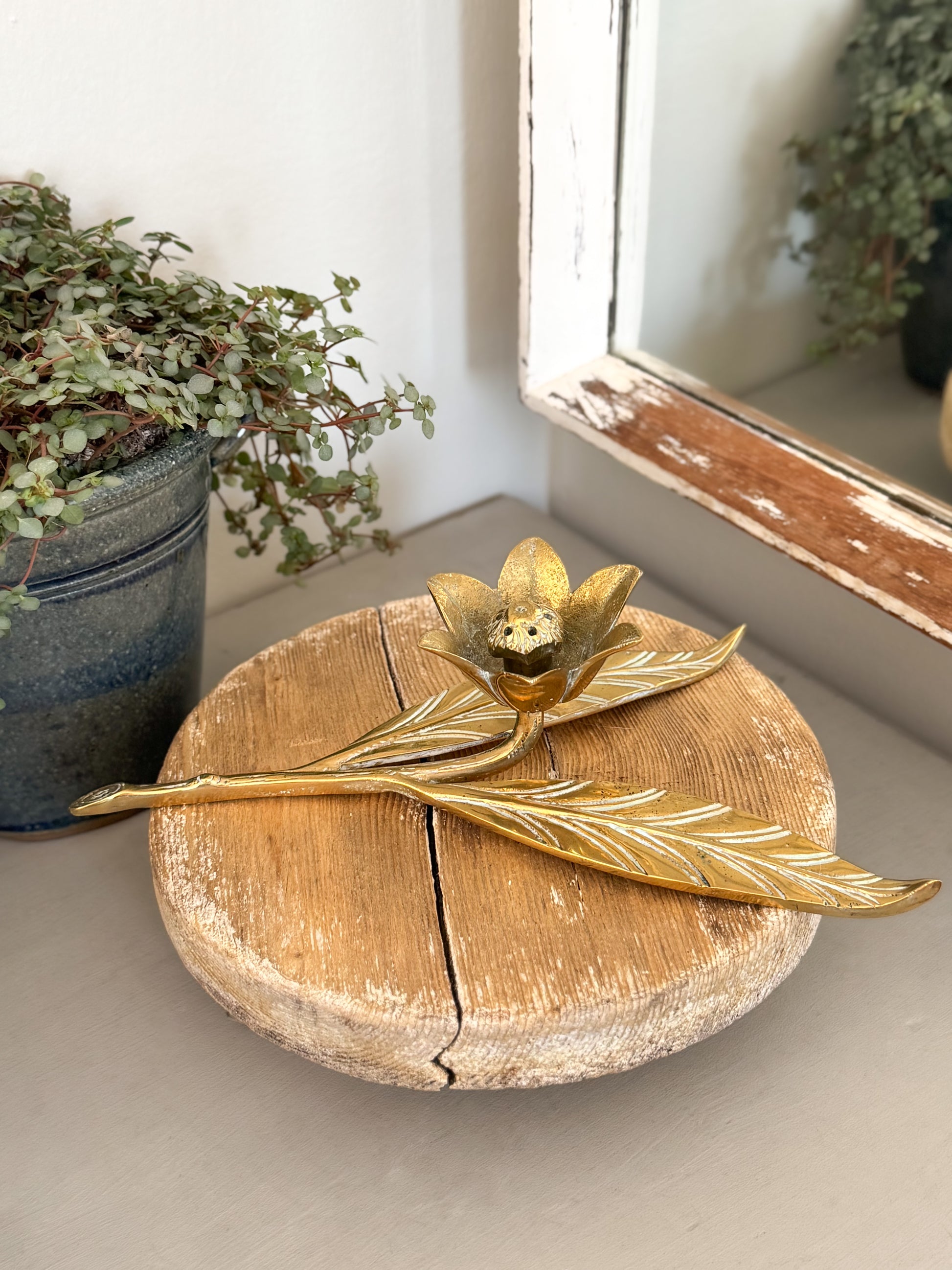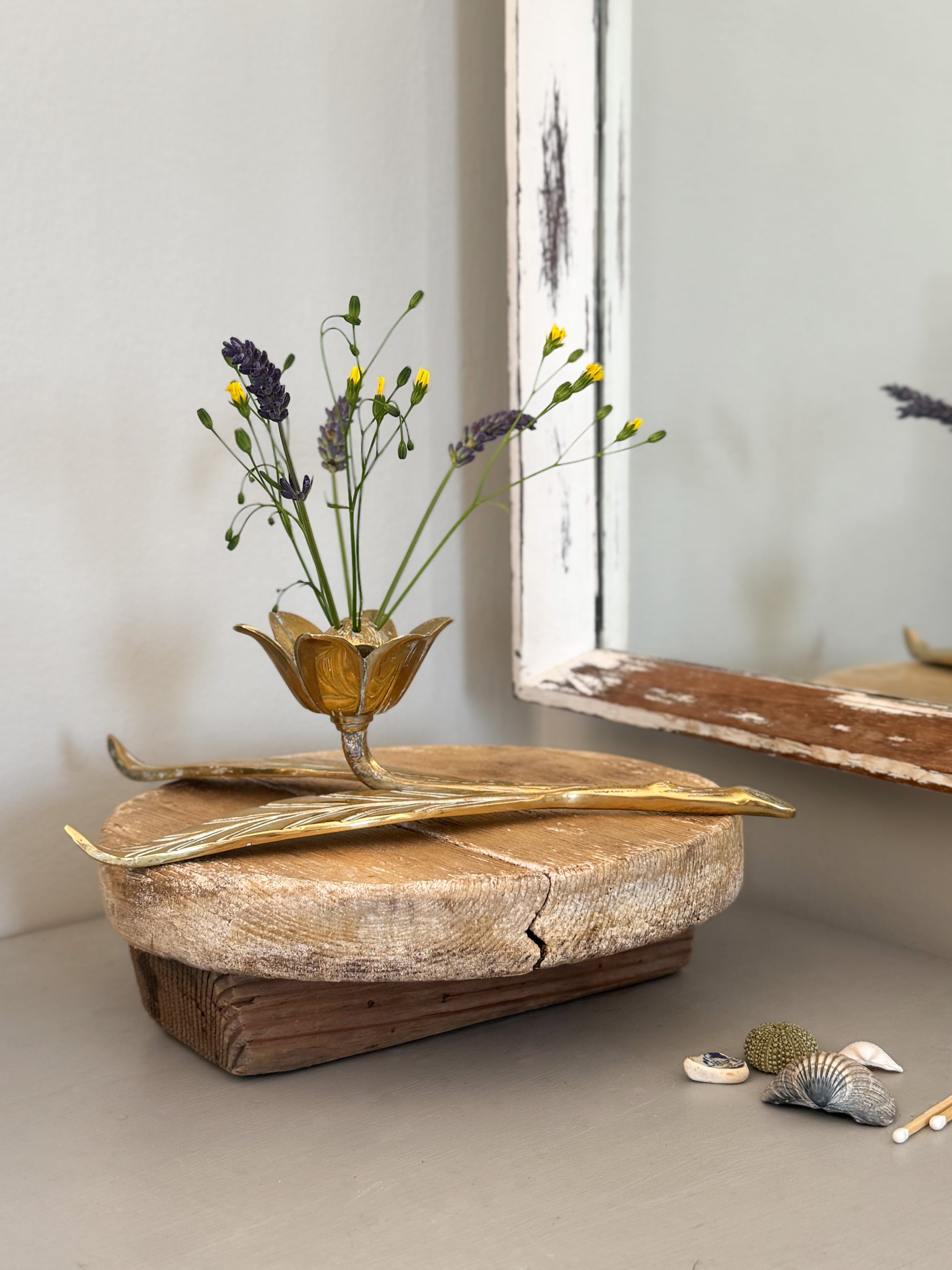 A truly beautiful solid brass flower sculpture, weighty, detailed, and full of character. The little holes in the centre are just right for small stems (best suited to dried flowers, as there’s nowhere for water). Use it to dry out your lavender while still keeping it on display, or pop in a few wildflowers from a morning walk.