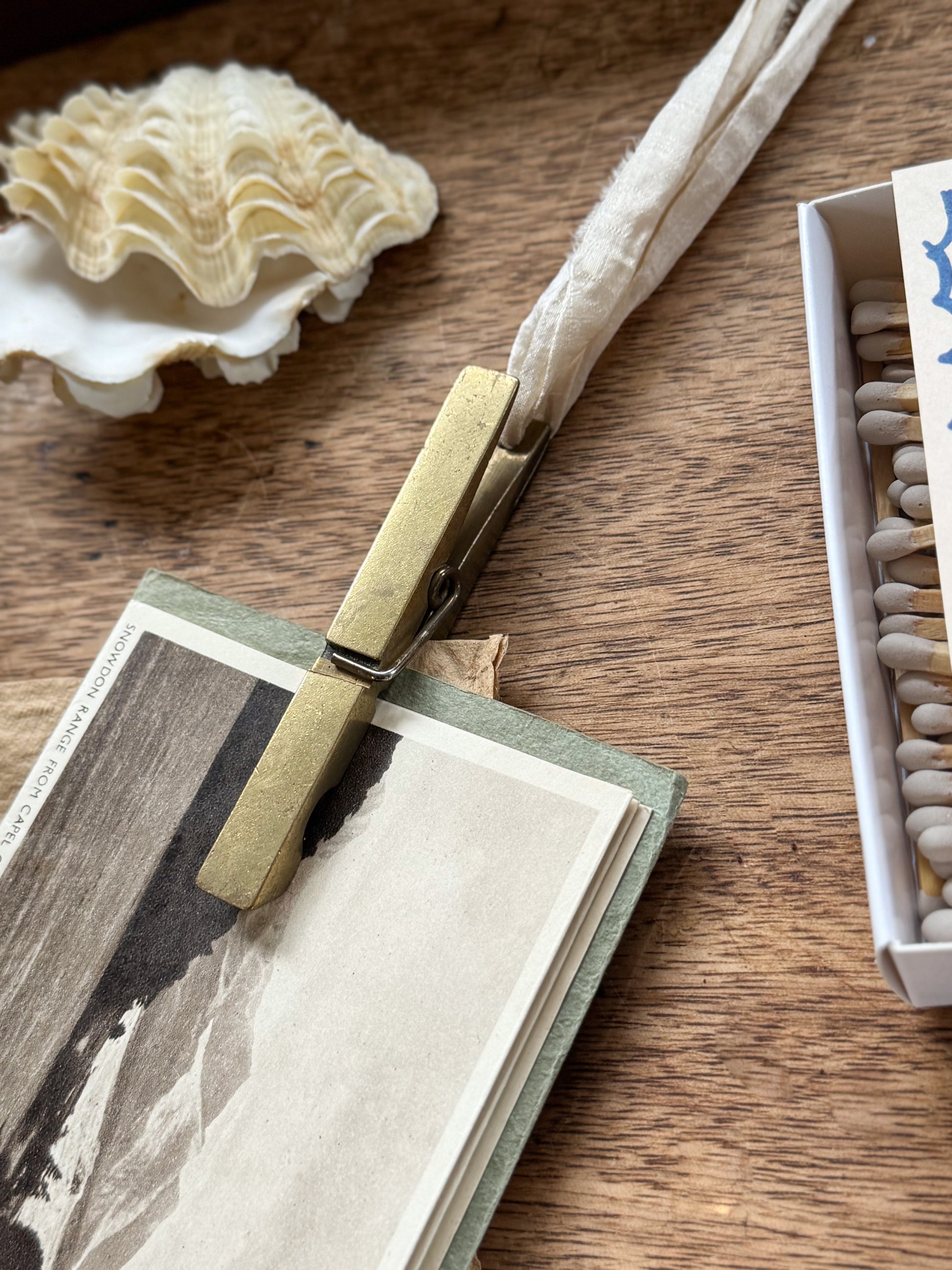 A beautiful vintage solid brass letter clip, crafted in the shape of an oversized peg. Its simple utilitarian form and warm, aged patina make it both sculptural and practical, the kind of everyday object that feels timeless and quietly elegant.
