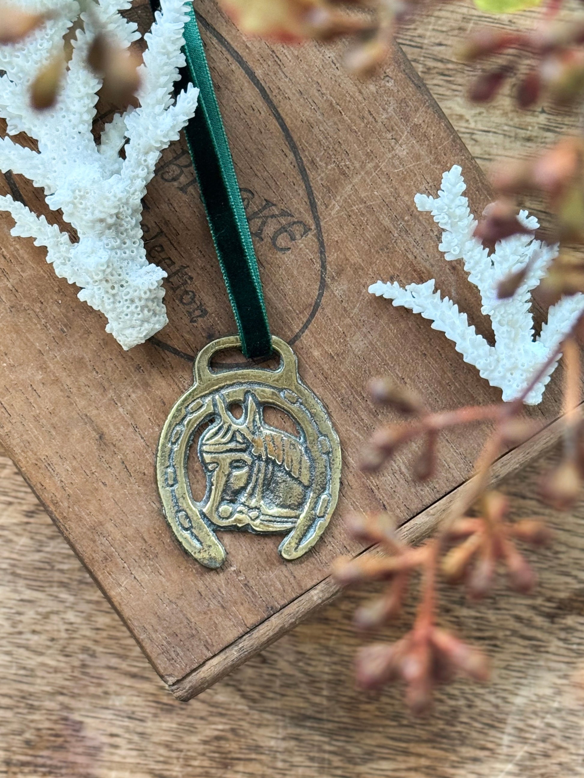 A beautiful small treasure from another time, this vintage solid brass token was once inspired by the traditional horse brasses that adorned working horses for good luck and protection. The miniature versions are especially rare, each one cast in solid brass and gently aged with a soft golden patina that tells its own quiet story.