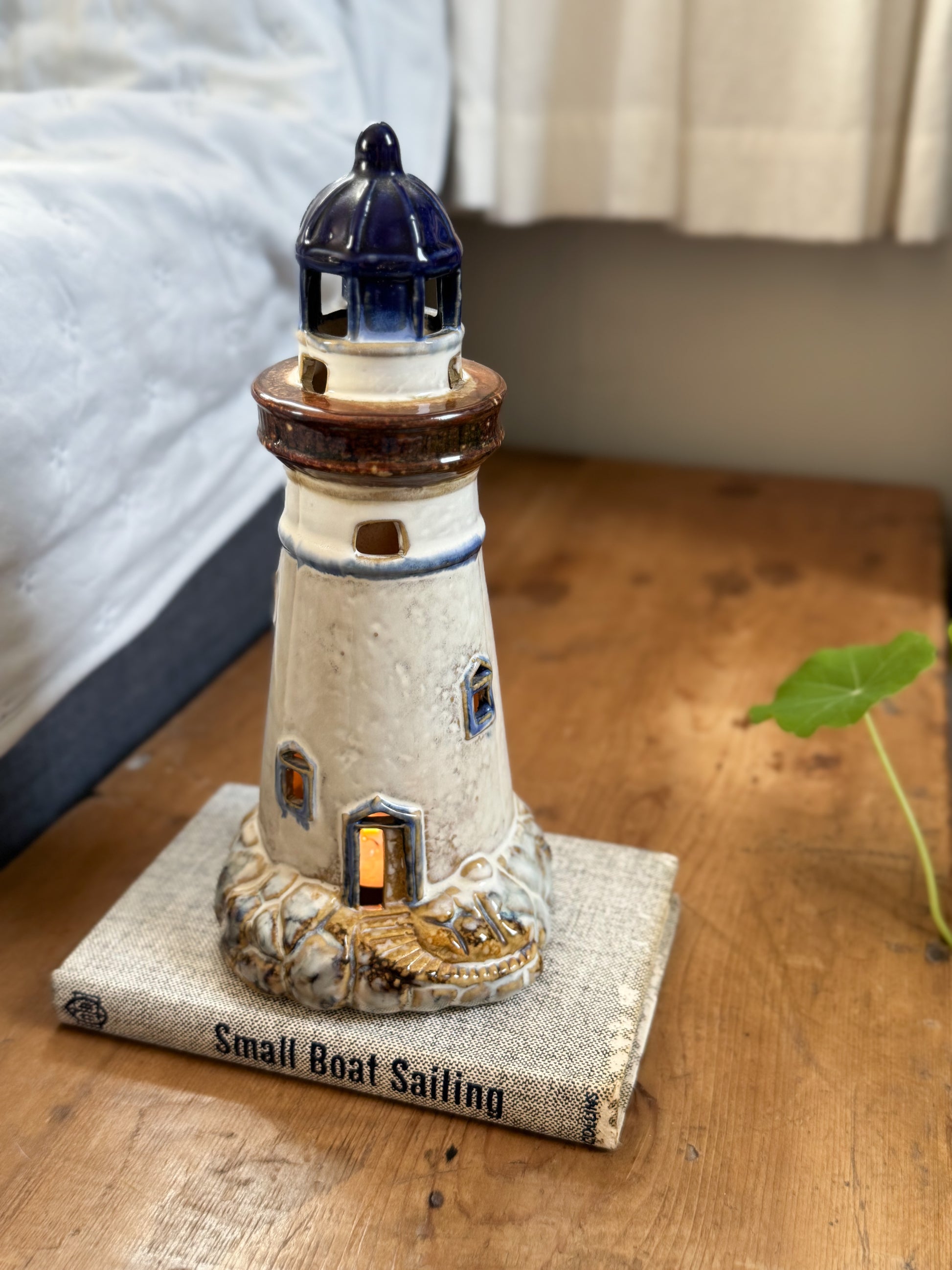 Each little window and doorway casts a flicker of candlelight, creating a gentle glow. Whether styled on a bedside table, mantle, or bookshelf (we adore it paired with vintage sailing books), it brings a lovely sense of nostalgia and calm.