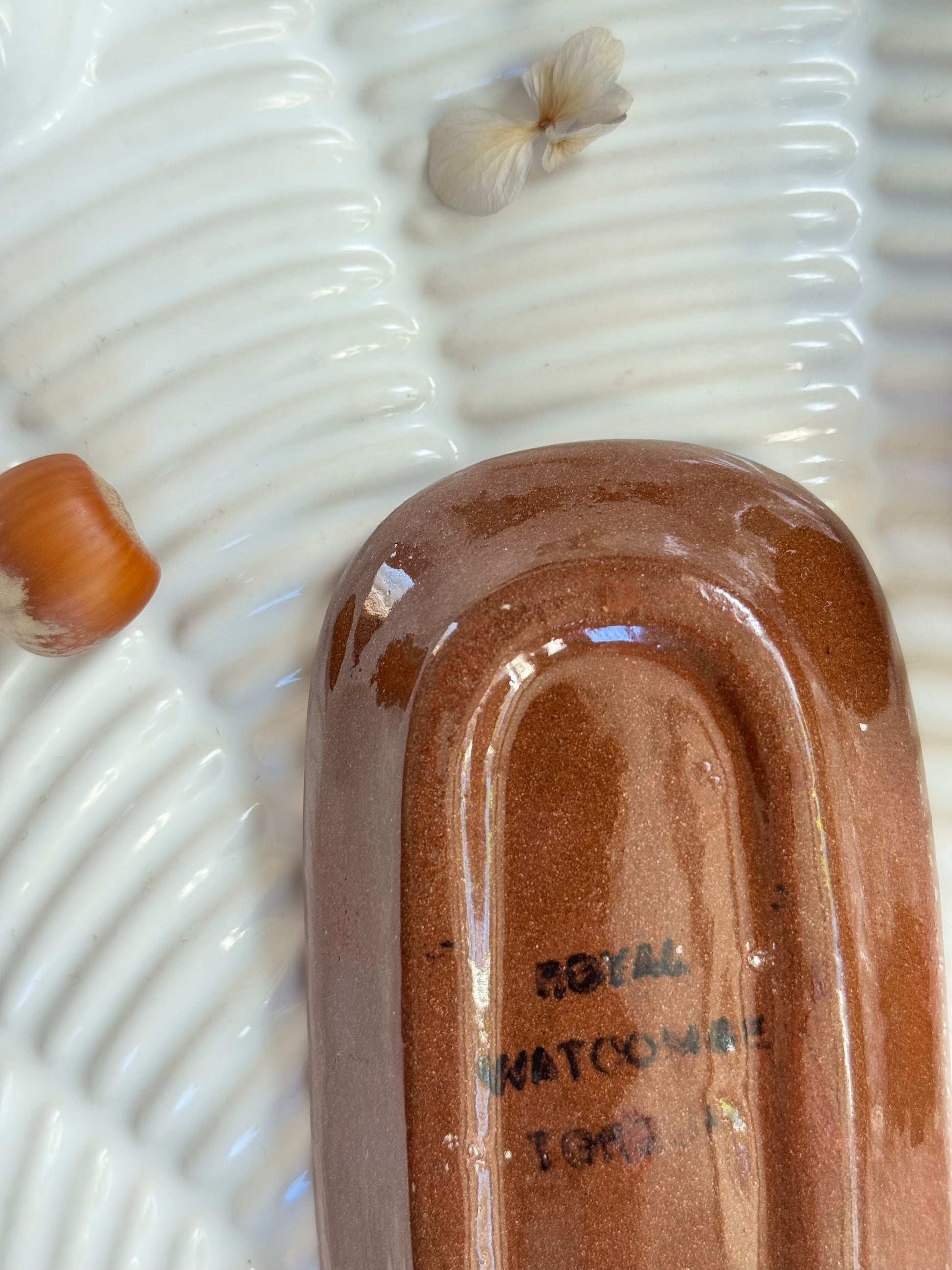 A charming vintage slipware trinket dish made by Watcombe Pottery, Torquay. Souvenir pieces aren’t something I usually source, but this one felt meant for Hiraeth Vintage, with its Welsh connection and the sweetest hand-painted cottage scene beneath the words “Cymru Am Byth” (“Wales Forever”).